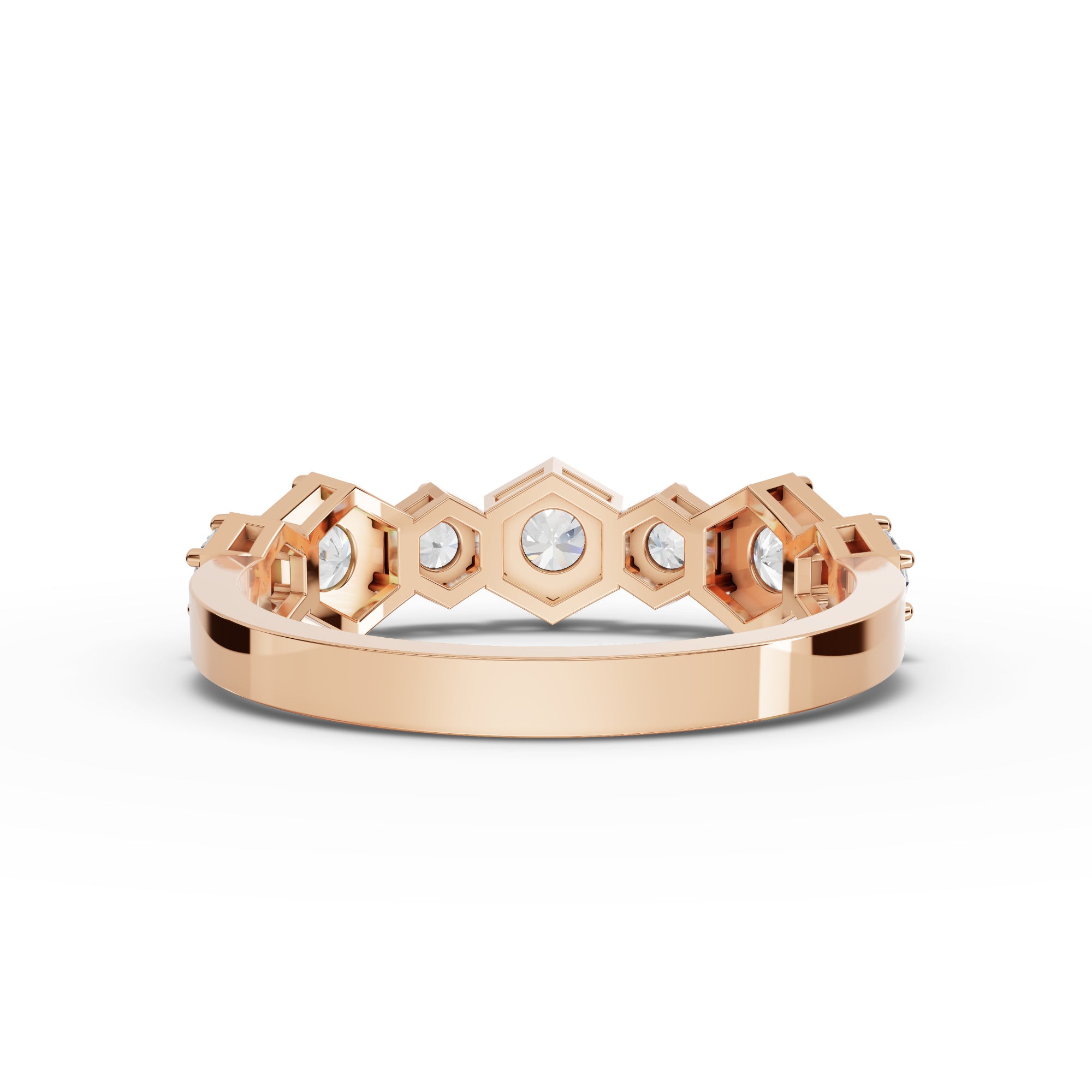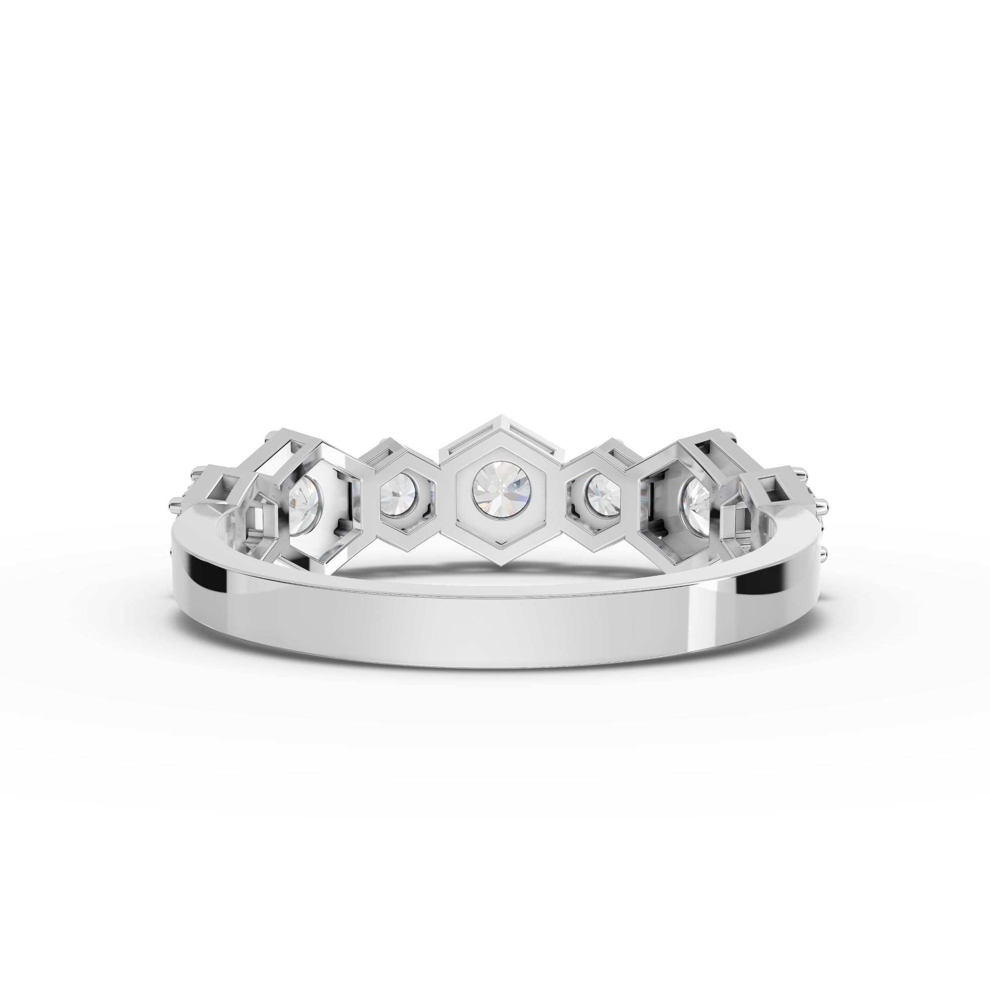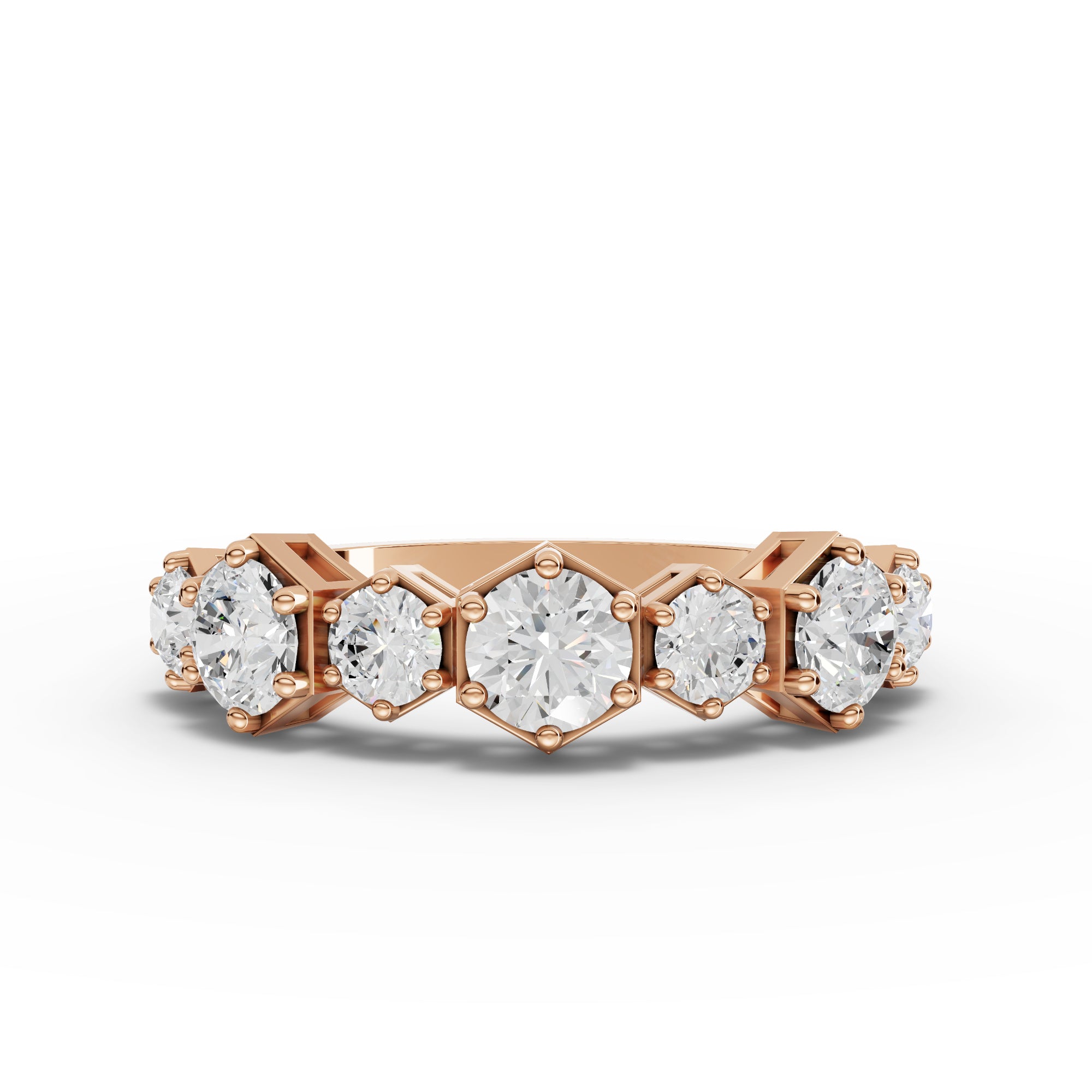 Completing the set, the eternity ring is crafted with seven round lab-grown diamonds totaling approximately 1.13 ct, delivering continuous brilliance with a smooth, wearable profile that complements both the pendant and earrings.