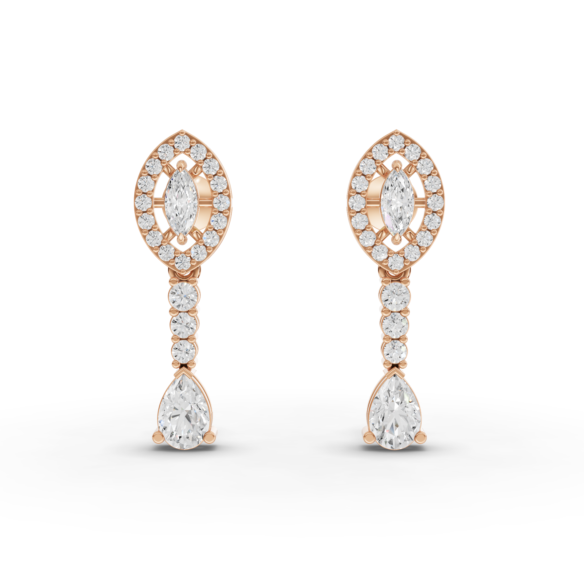The matching drop earrings feature two marquise-cut lab-grown diamonds with a combined approximate weight of 0.22 ct, complemented by two pear-shaped diamonds totaling approximately 0.71 ct and thirty-eight round accent diamonds totaling approximately 0.84 ct. The elongated drop profile offers luminous brilliance and elegant motion with every wear.