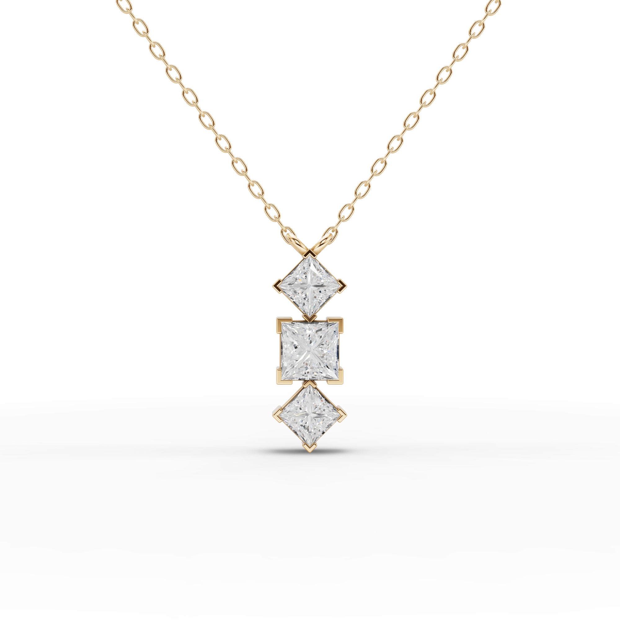 Elevate your collection with this striking geometric drop pendant, featuring a lab-grown diamond in a refined princess cut. The modern design combines clean lines with timeless elegance, showcasing the diamond's brilliant sparkle from every angle. Lab-grown diamonds offer the same optical and physical properties as mined diamonds while providing an ethical, sustainable choice. Perfect for everyday sophistication or special occasions, this necklace delivers luxury without compromise.