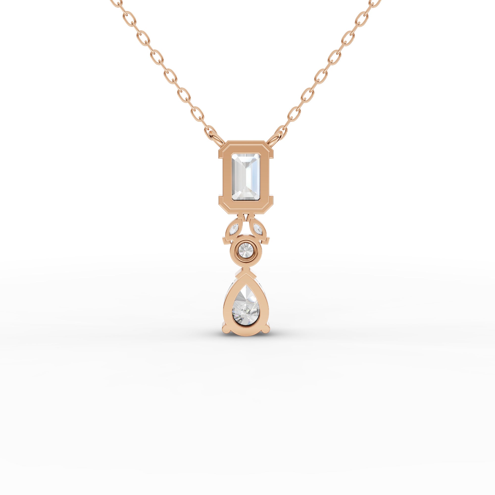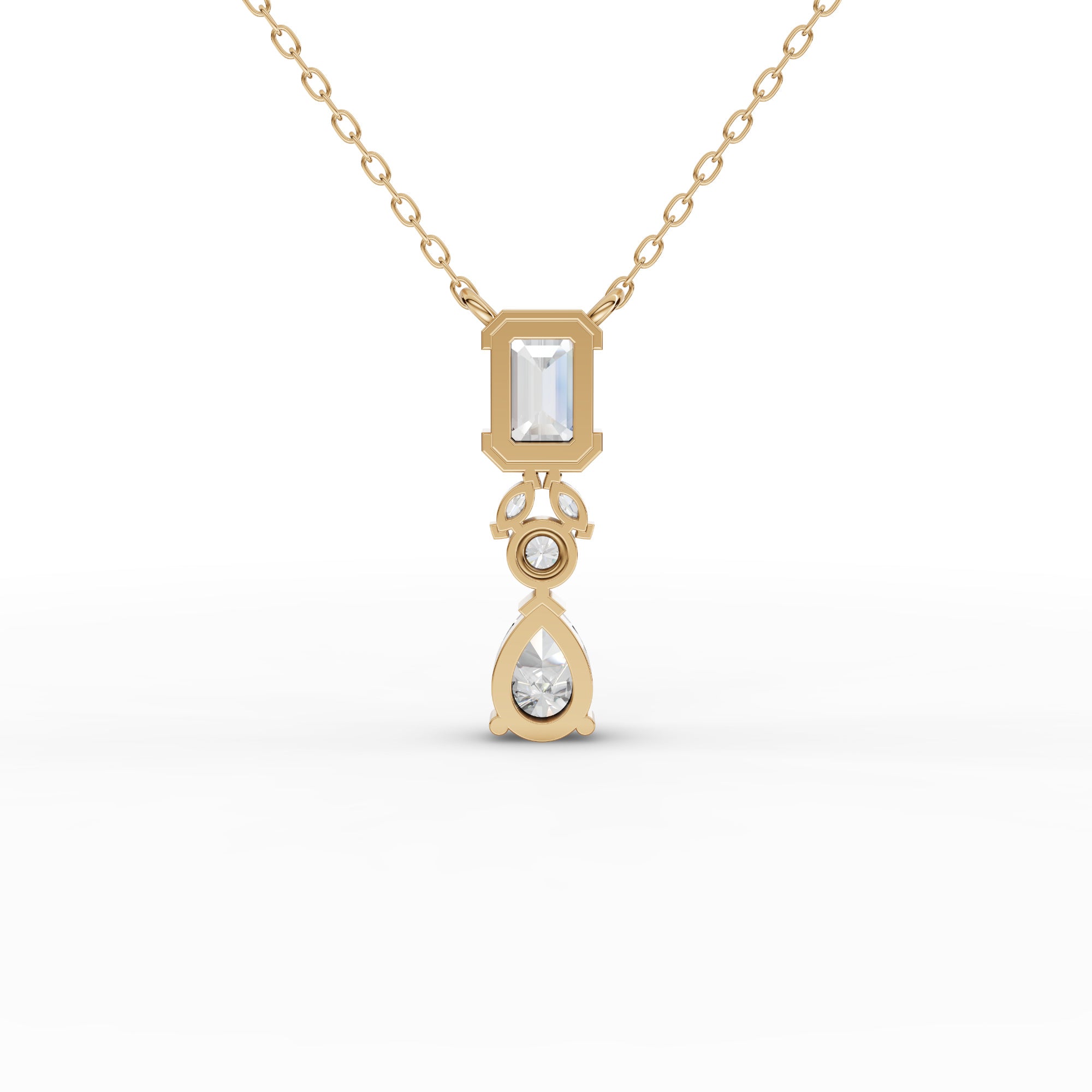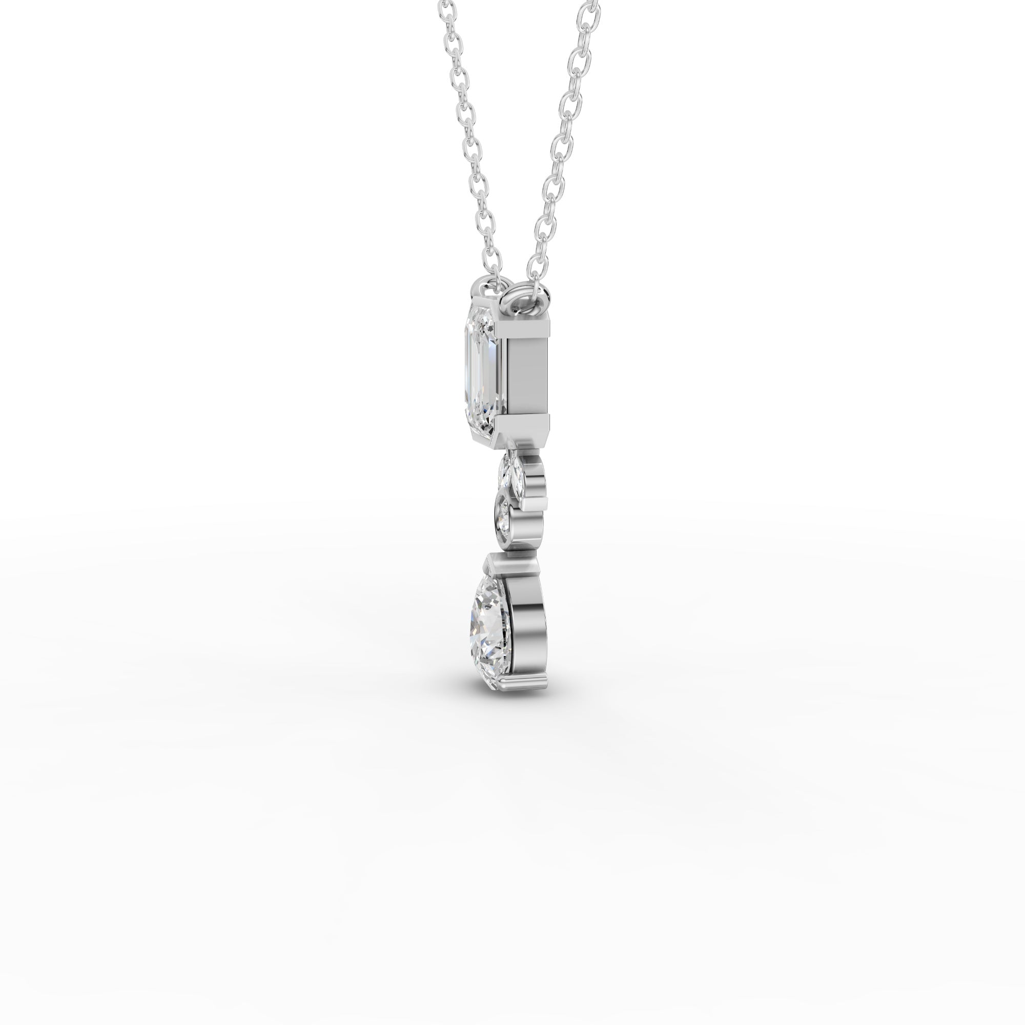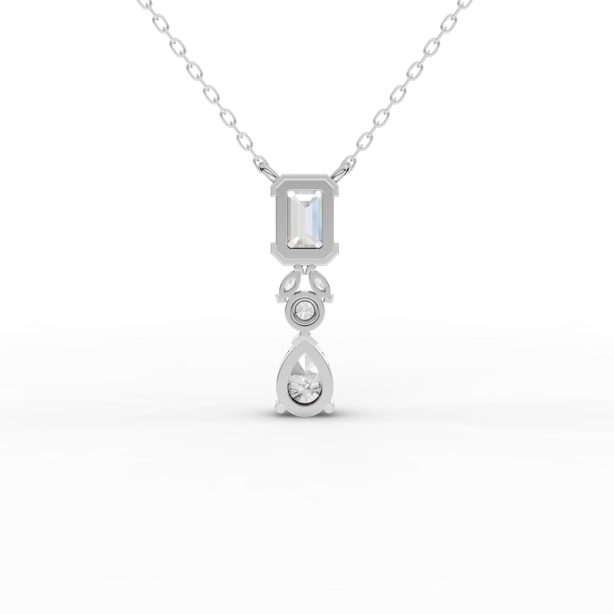 Elevate your collection with this sophisticated lab-grown diamond necklace, featuring a stunning emerald-cut stone as the focal point. The pear-shaped accent adds refined contrast and dimension to the design. Lab-grown diamonds offer the same optical and physical properties as mined diamonds while providing an ethical, sustainable alternative. This piece combines timeless elegance with contemporary consciousness, perfect for those who value both beauty and responsible sourcing. An investment in enduring style.