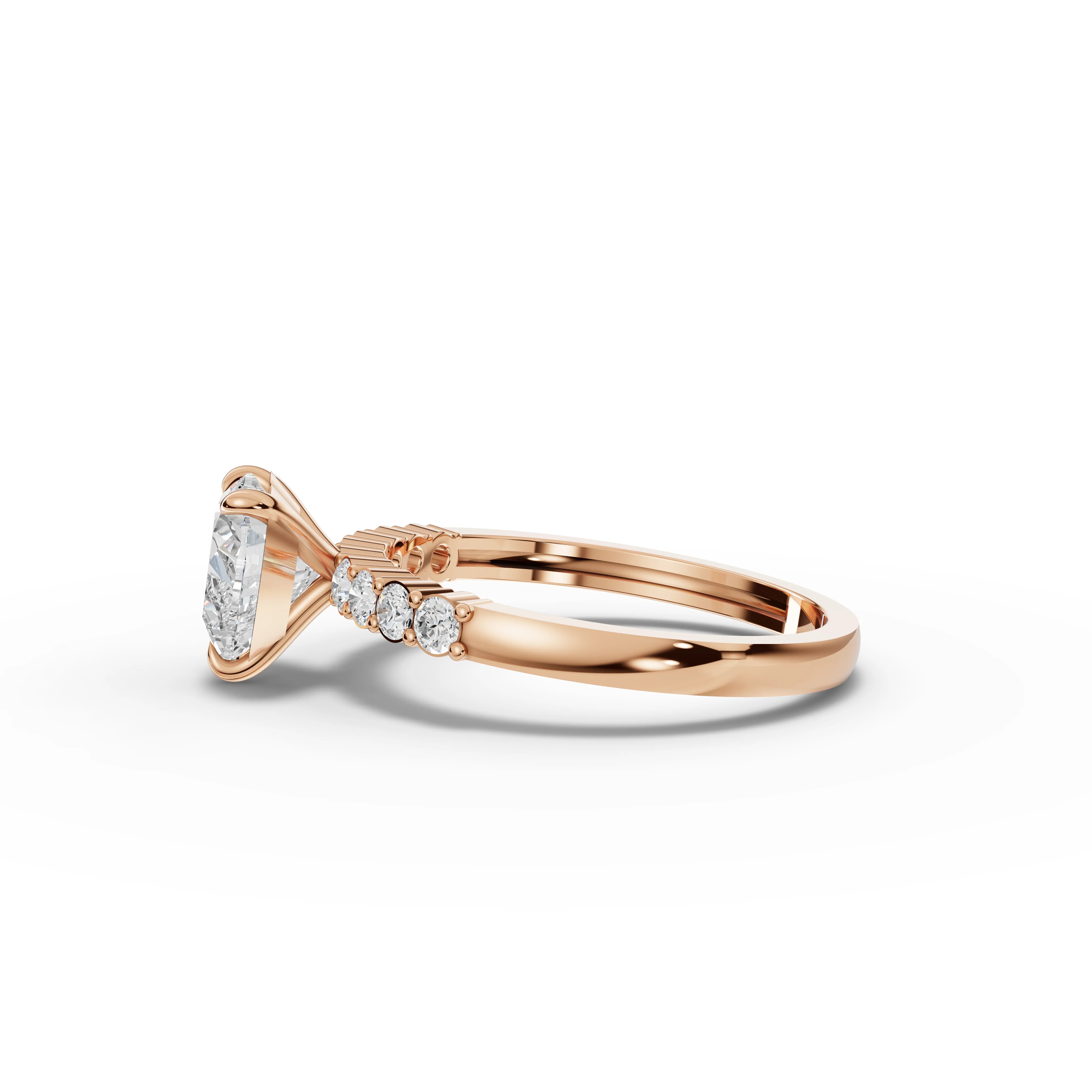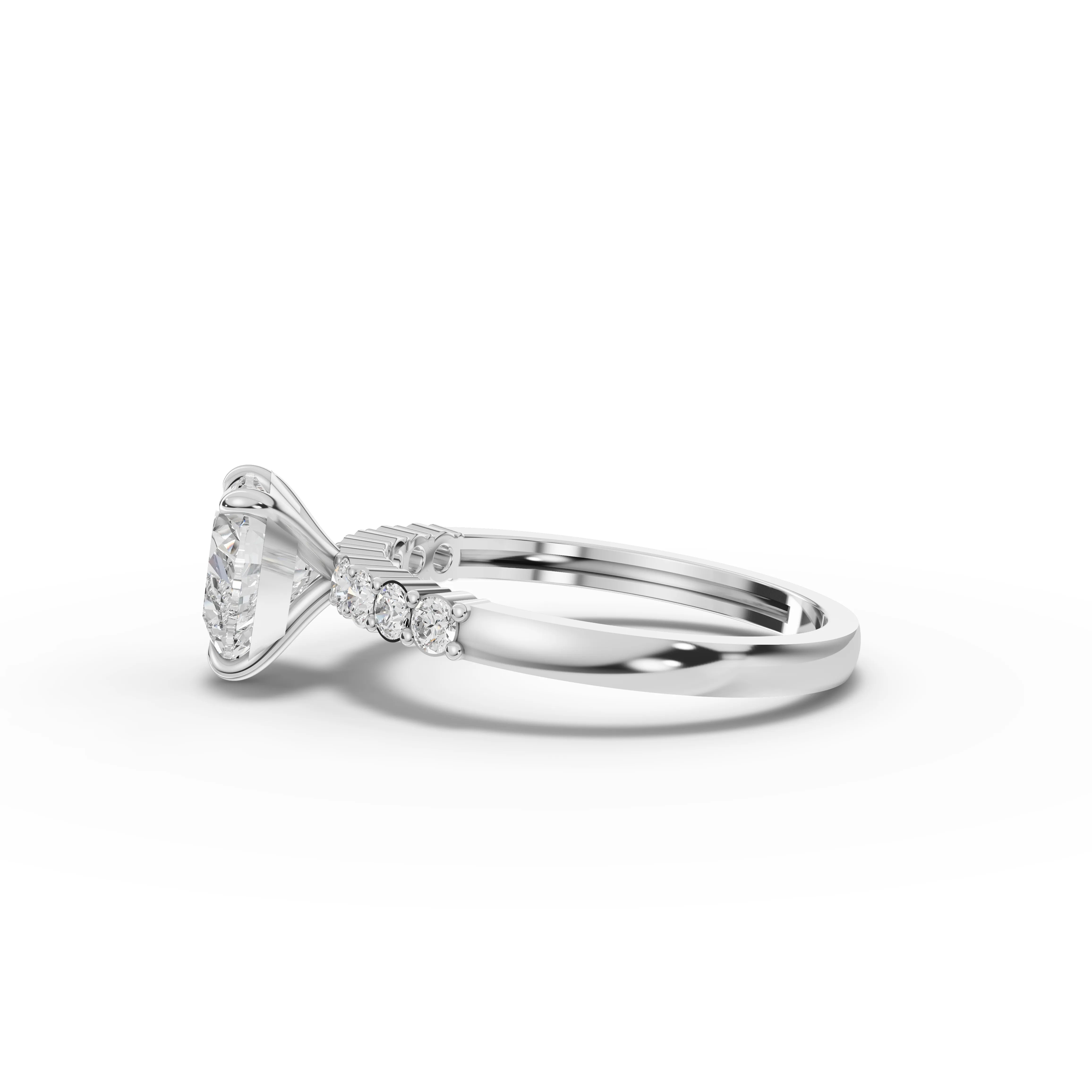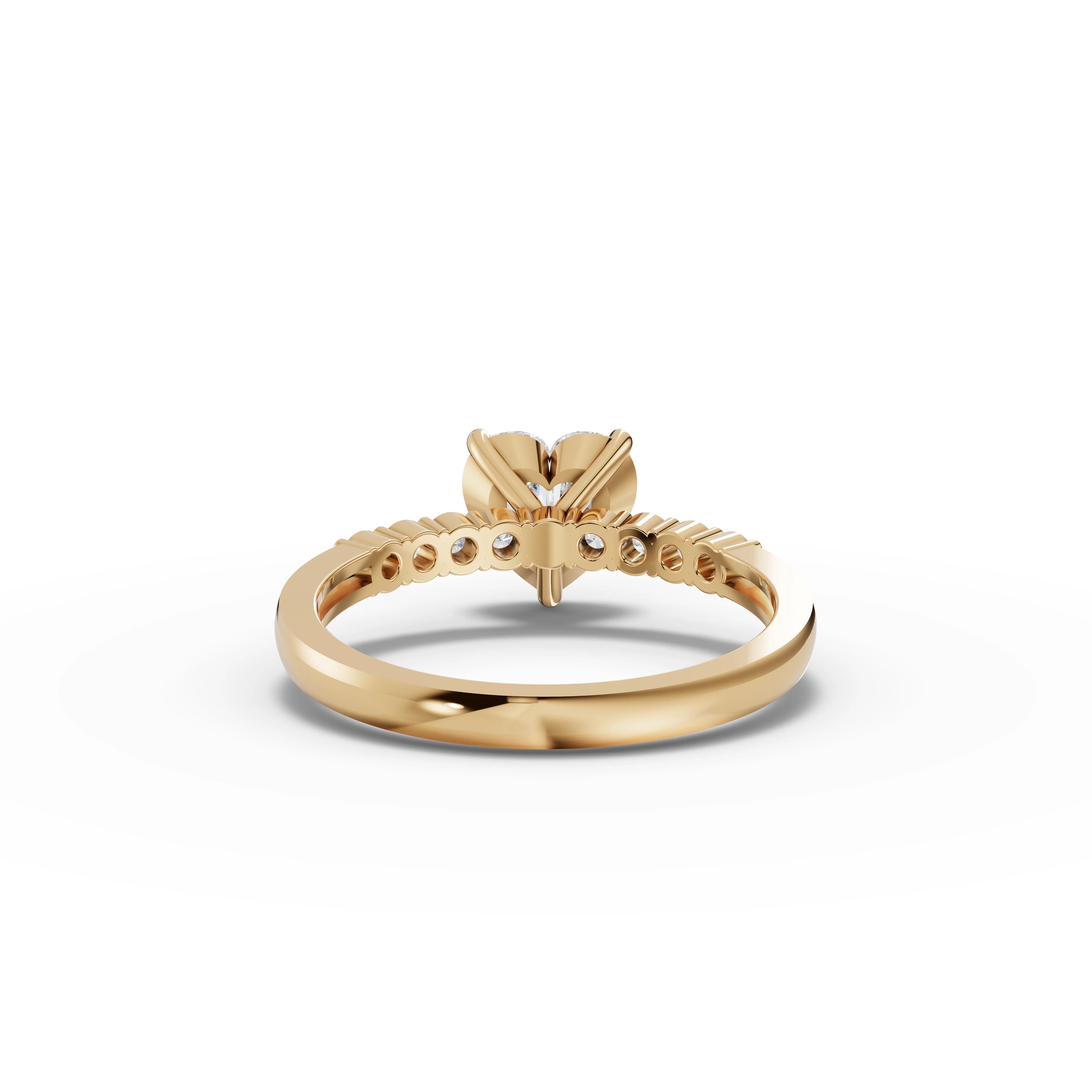 The engagement ring features a striking heart-cut lab-grown diamond weighing approximately 1.21 ct, graded D–E color with VVS clarity, and finished with eight round pavé diamonds totaling approximately 0.24 ct along the band for added brilliance and depth.