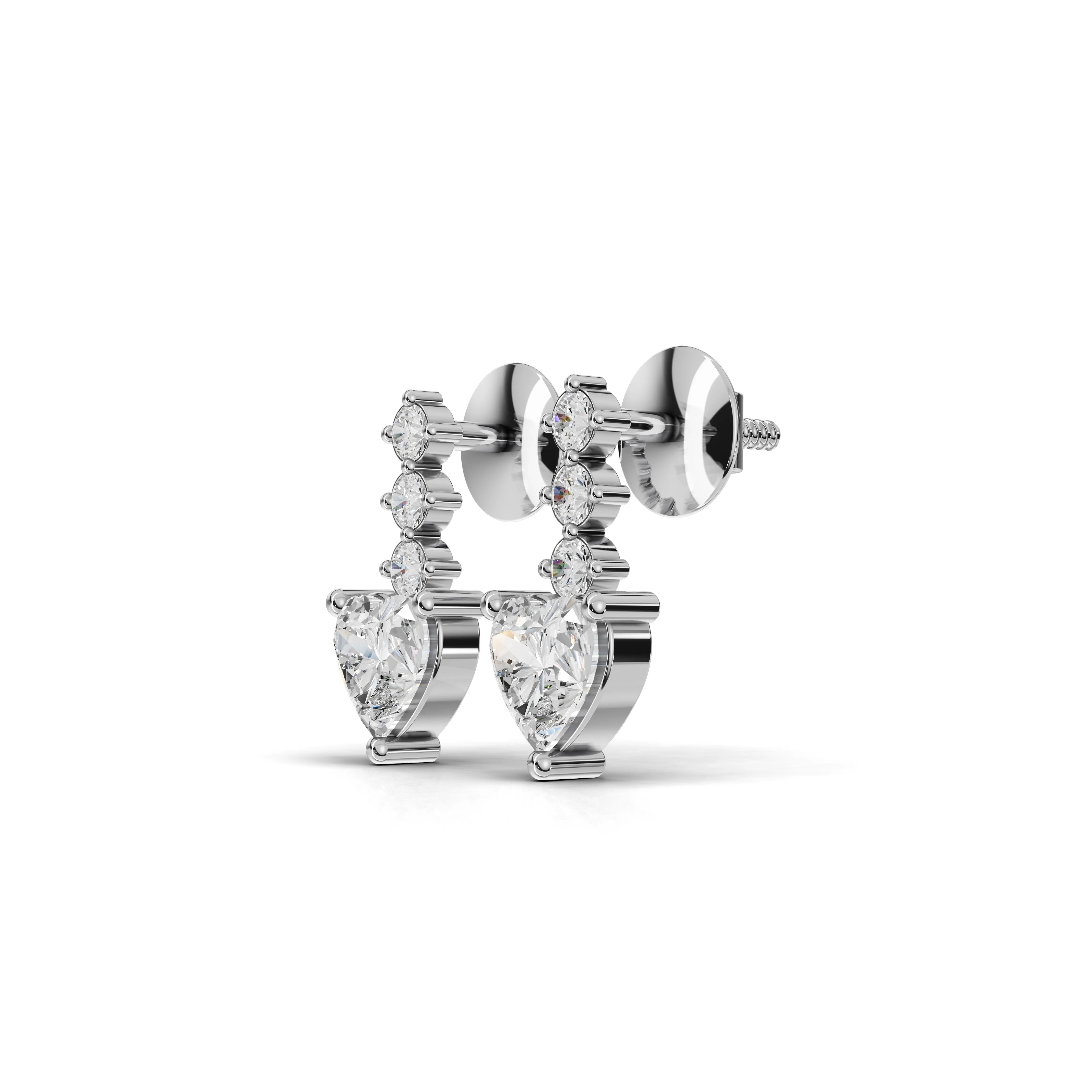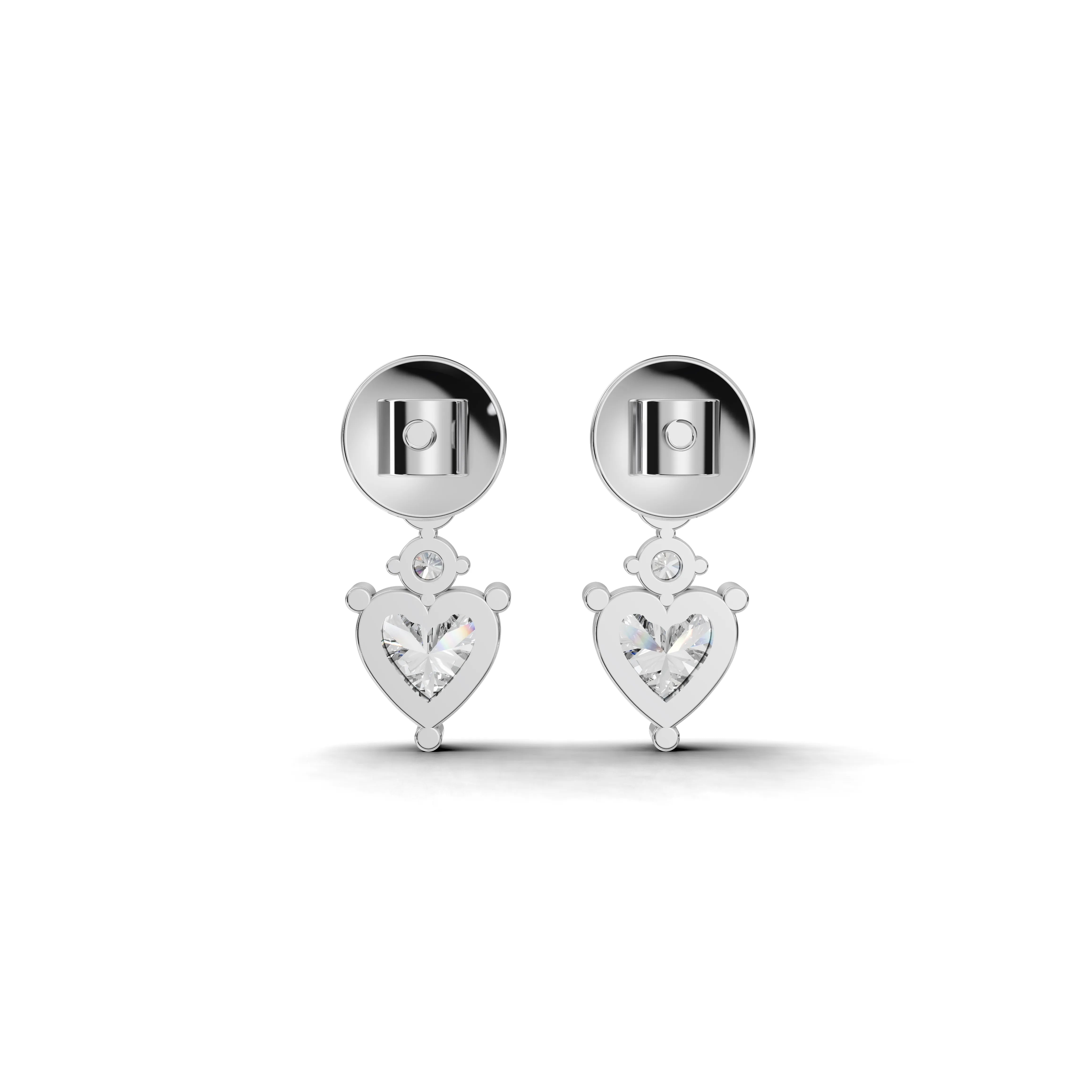 Completing the set, the dangle earrings showcase two heart-shaped lab-grown diamonds with a combined approximate weight of 0.88 ct, accented by six round diamonds totaling approximately 0.18 ct, offering graceful motion and luminous sparkle with every wear.