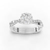 The defining feature of this design is the twist pavé band, where the shank subtly rotates around its axis to create a dynamic, flowing contour. Integrated into this twisted structure, pavé-set round diamonds form a continuous sparkle pattern engineered for uniform spacing, secure tension distribution, and maximum light dispersion. This dual-element configuration merges classic solitaire aesthetics with modern geometric movement.