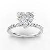 Along the band, pavé-set round diamonds create a continuous scintillation corridor designed to complement the center stone’s romantic silhouette. Each pavé diamond is placed within a micro-contoured housing engineered for even spacing, secure tension distribution, and high-dispersion reflective performance. The pavé alignment enhances the ring’s luminance without overwhelming the heart-shaped centerpiece.