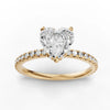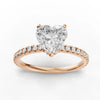 Enhancing the central diamond, pavé-set round diamonds extend along the band to create a continuous radiance corridor engineered for uniform spacing, secure micro-seating, and high-dispersion brilliance. This pavé alignment introduces a contrasting light signature that complements the heart cut’s romantic silhouette without overshadowing it.