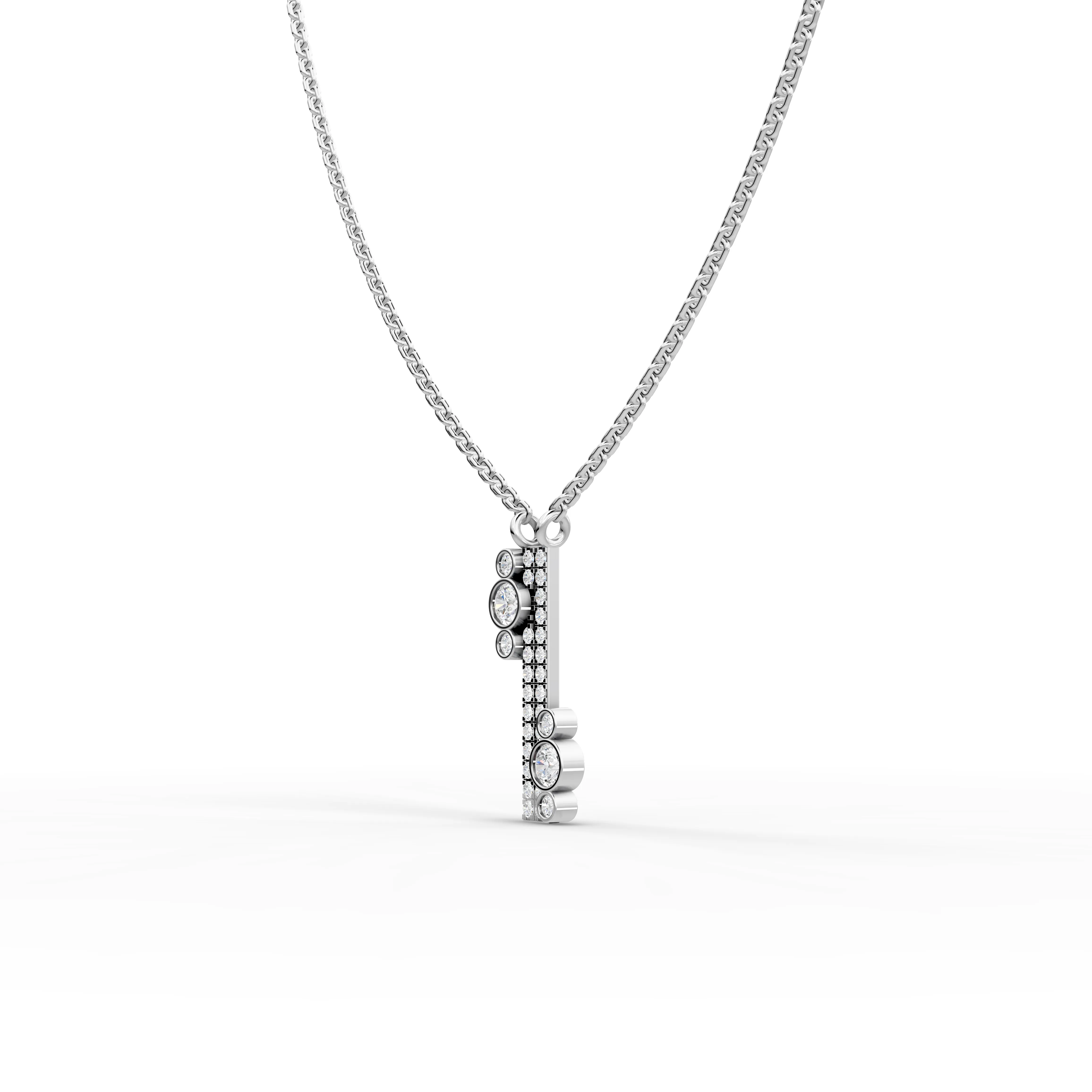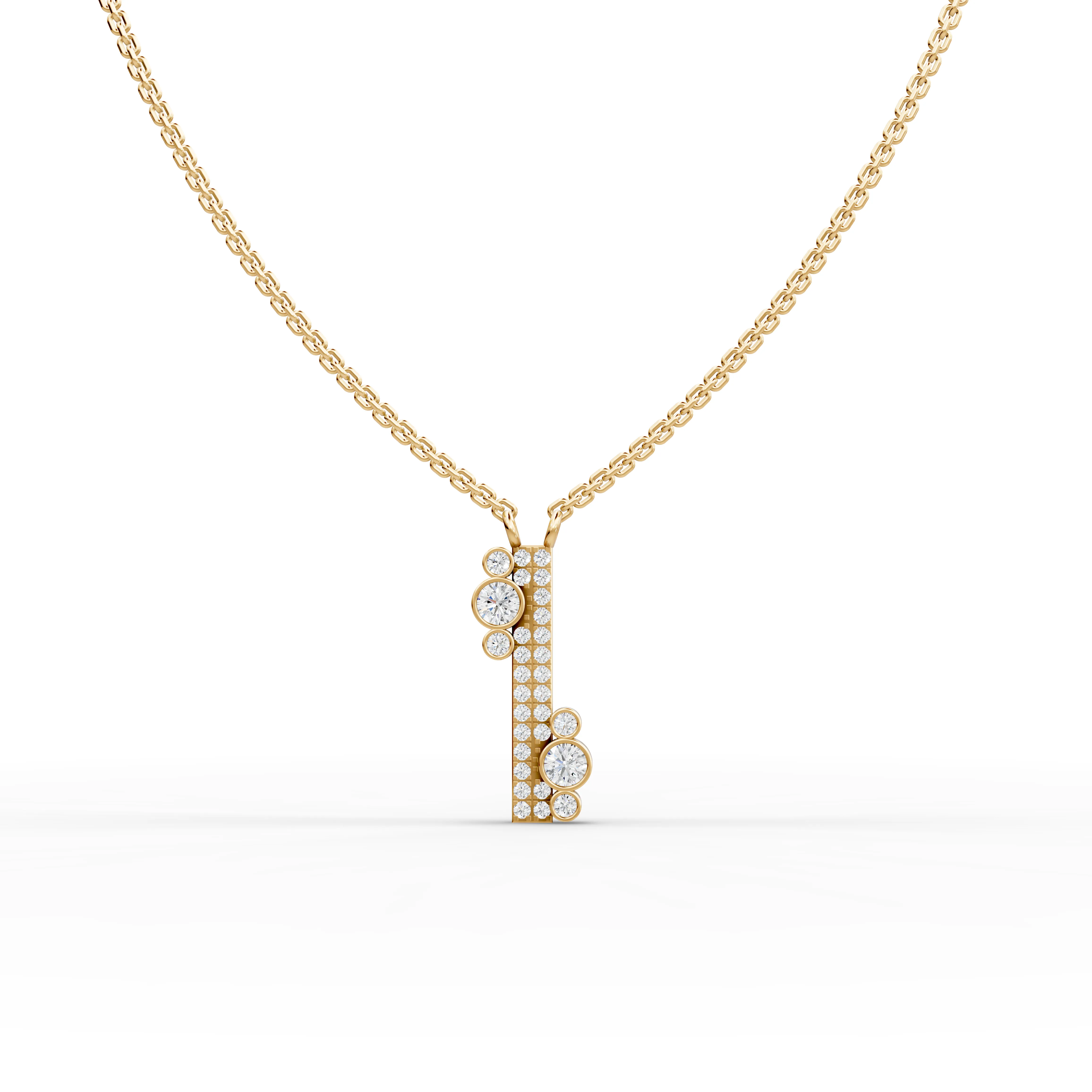 Lab-grown diamonds offer exceptional brilliance with complete transparency about their origin. This asymmetrical bar pendant showcases modern design sensibilities, featuring a sleek geometric form that catches light beautifully from multiple angles. The offset bar design creates visual interest while maintaining elegant simplicity, making it versatile enough for everyday wear or special occasions. Crafted with ethically sourced lab-grown diamonds, this necklace combines contemporary aesthetics with responsible luxury—delivering the same optical properties and durability as mined diamonds at a more accessible price point.