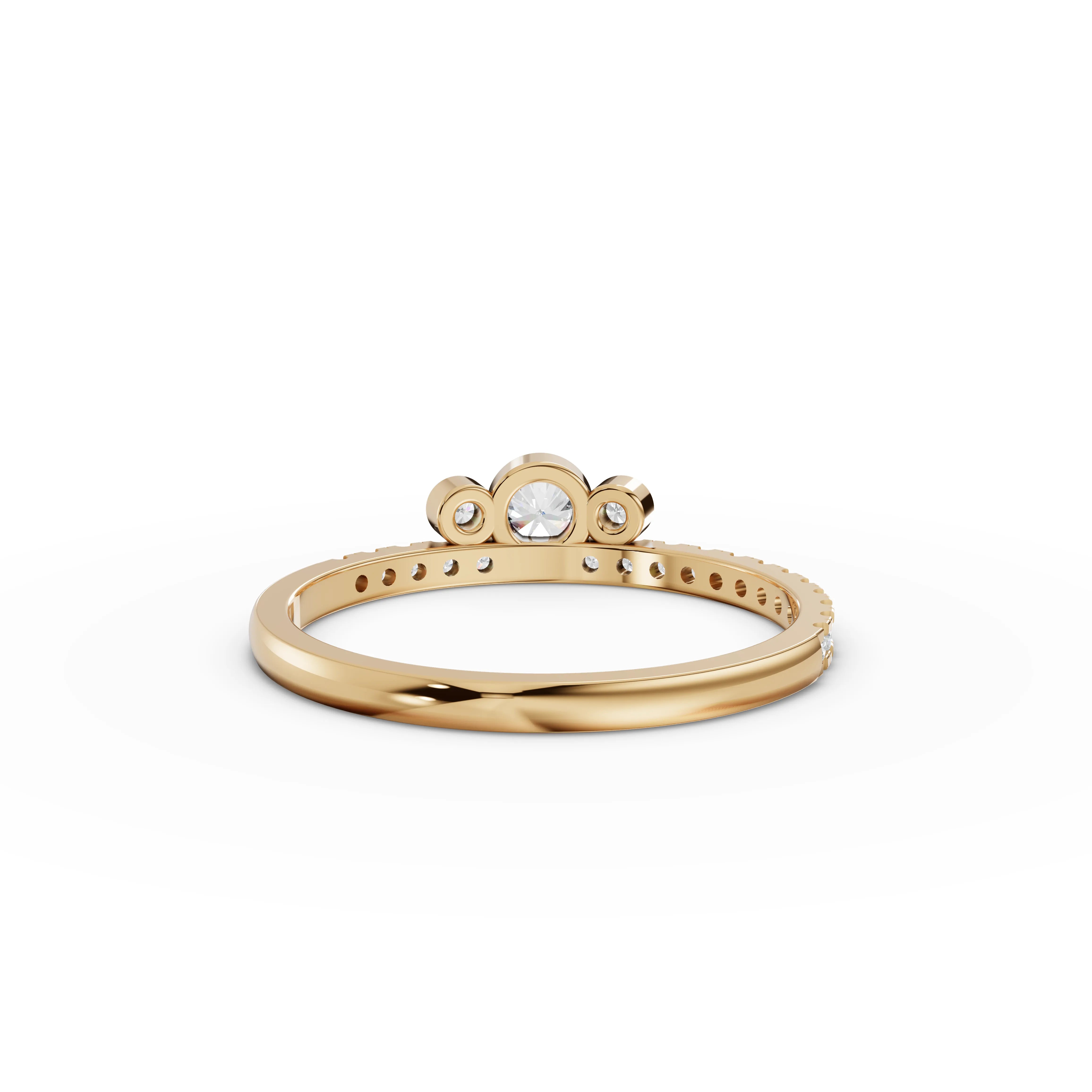 Completing the set, the three-stone pavé ring is centered with a round lab-grown diamond of approximately 0.12 ct, complemented by nineteen round pavé-set diamonds totaling approximately 0.18 ct, delivering layered brilliance with a refined, wearable profile.