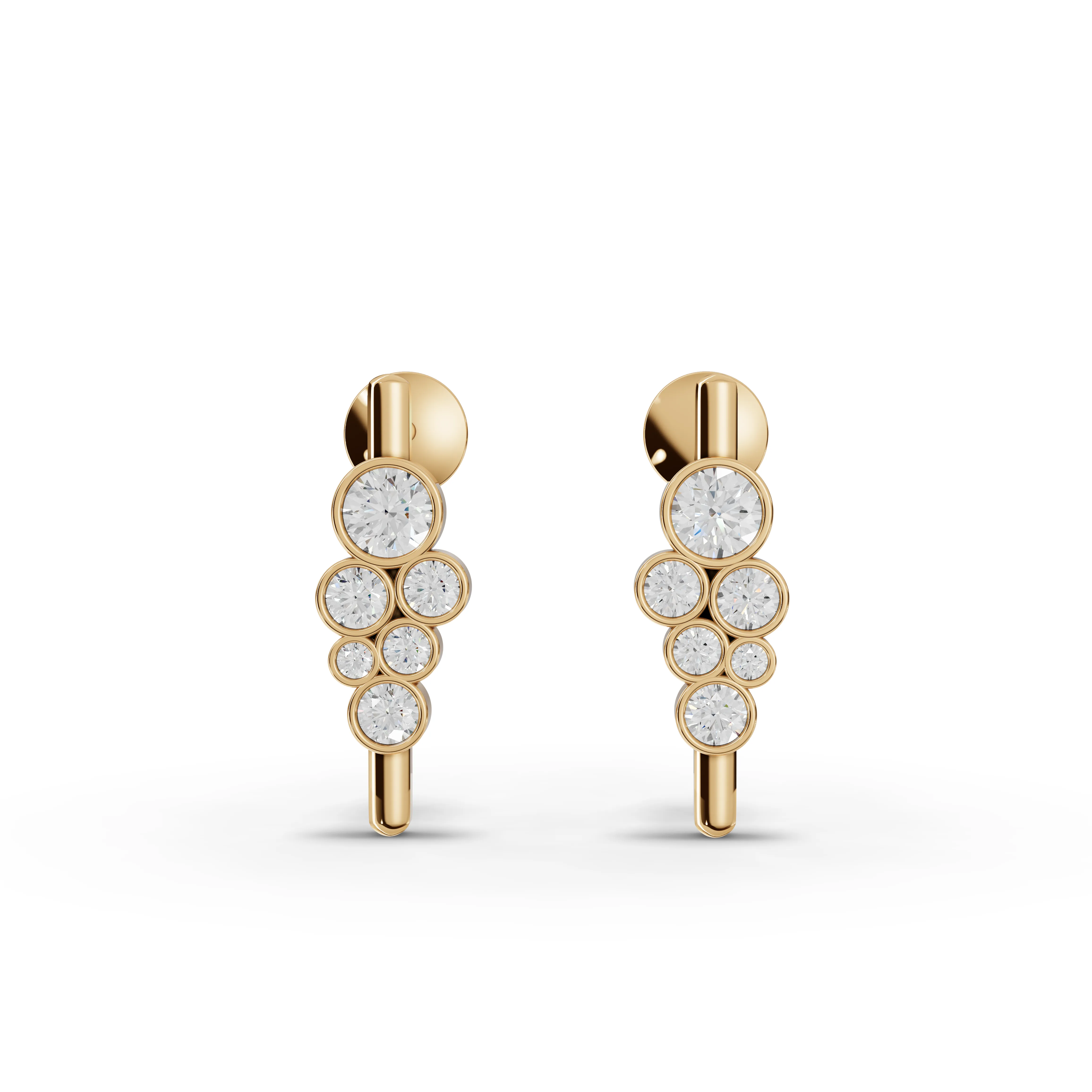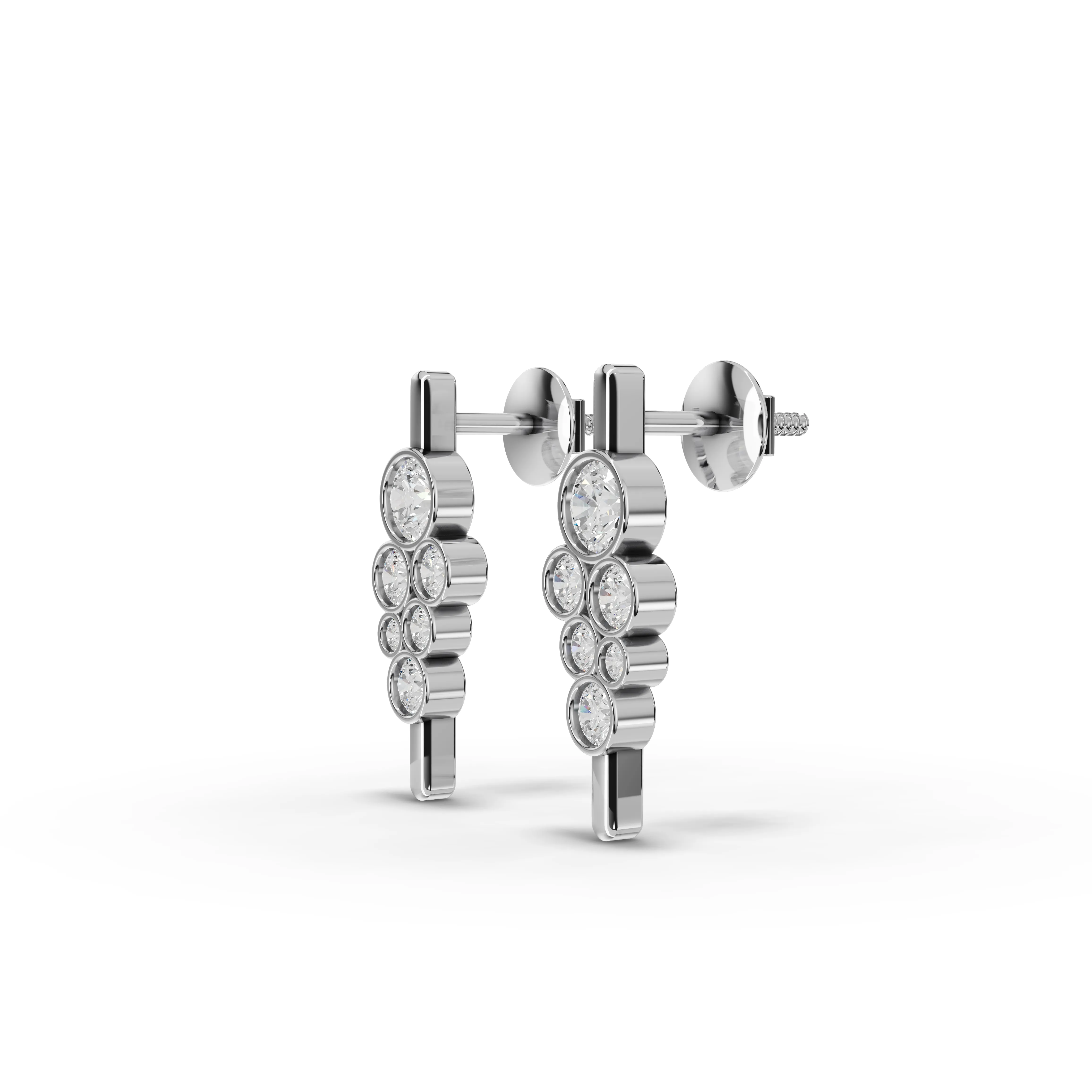 The bezel cluster drop pendant is set with six round lab-grown diamonds totaling approximately 0.26 ct, designed to sit elegantly and catch light with subtle movement. The matching graduated cluster drop earrings feature twelve round lab-grown diamonds totaling approximately 0.53 ct, creating a balanced drop silhouette with layered sparkle. Completing the set, the bubble eternity band is crafted with seventeen round lab-grown diamonds totaling approximately 0.75 ct, offering a continuous, luminous look with a smooth, wearable profile.