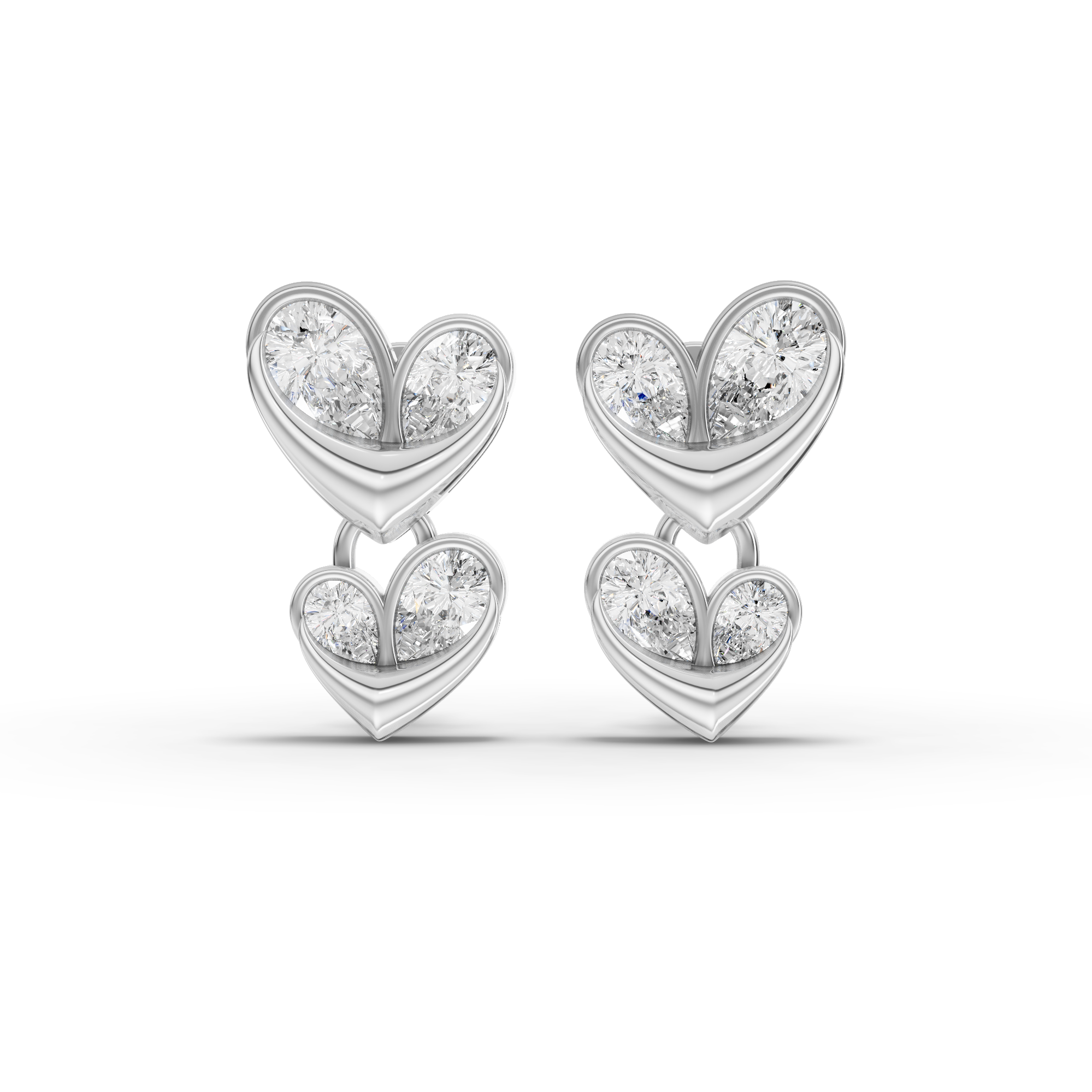 Lab-Grown Diamond Double Heart Drop Earrings Elevate your jewelry collection with these sophisticated double heart drop earrings, featuring lab-grown diamonds that deliver exceptional brilliance without compromise. Each piece showcases precision-cut hearts suspended in an elegant drop design, offering timeless appeal with contemporary flair. Lab-grown diamonds provide the same optical and physical properties as mined diamonds while offering superior value and ethical sourcing. Perfect for special occasions or everyday luxury, these earrings combine refined craftsmanship with sustainable elegance. A versatile addition to any discerning jewelry enthusiast's wardrobe.