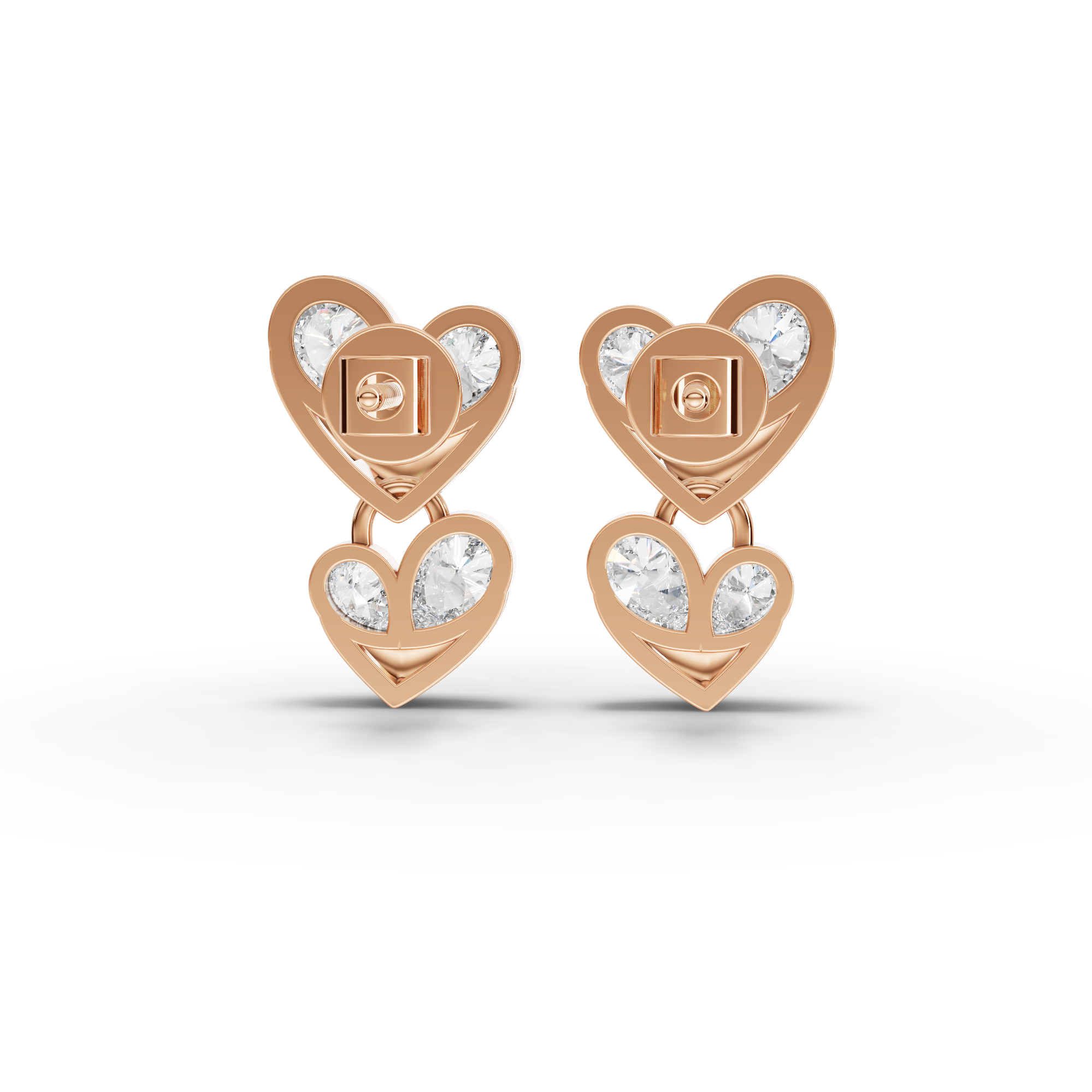 0.81 Ct Lab-Grown Diamond Double Heart Drop Earrings