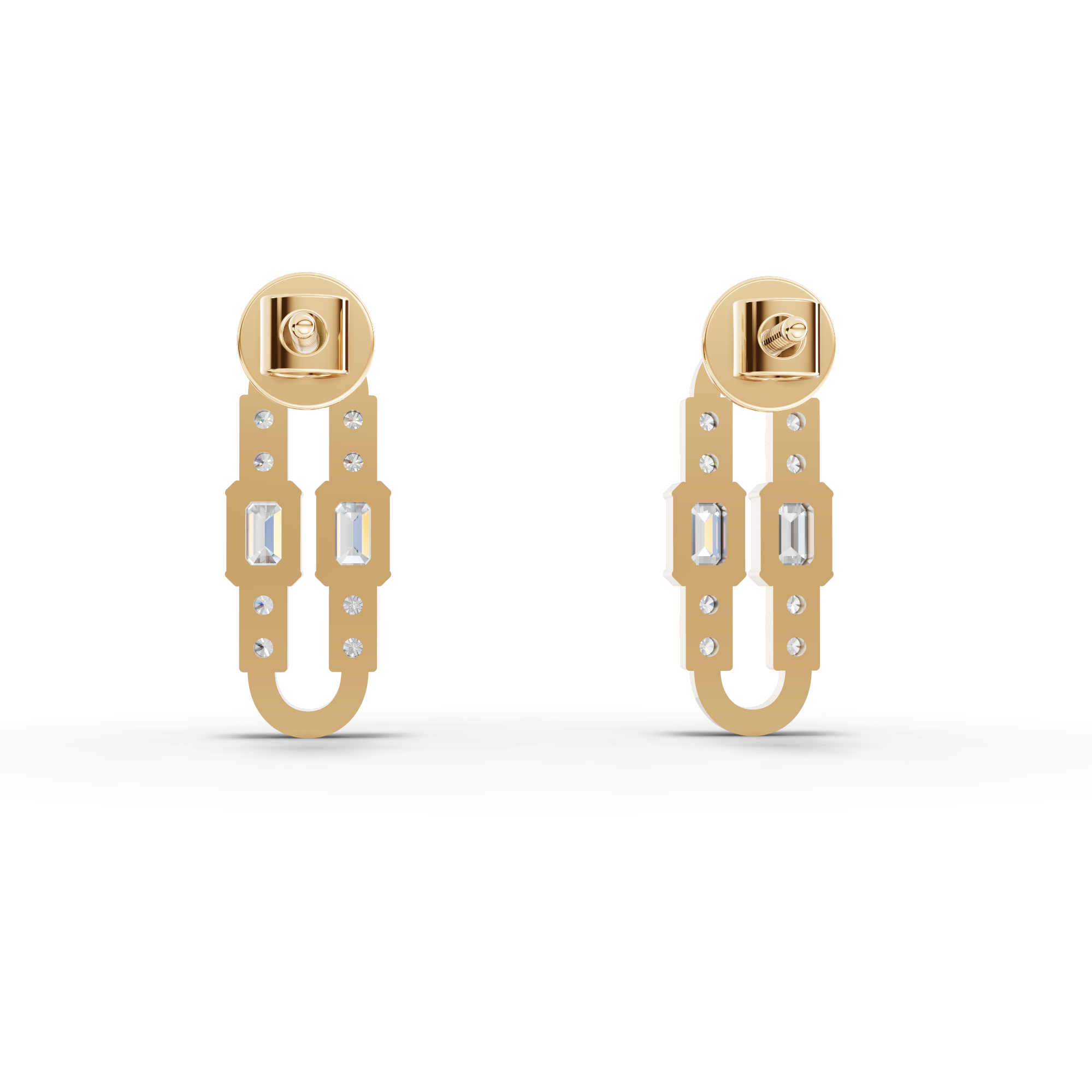Completing the set, the earrings feature four emerald-cut lab-grown diamonds with a combined approximate weight of 0.36 ct, enhanced by sixteen round lab-grown diamonds totaling approximately 0.13 ct. The balanced composition delivers radiant symmetry and soft movement, offering a polished finishing touch that transitions effortlessly from day to evening.
