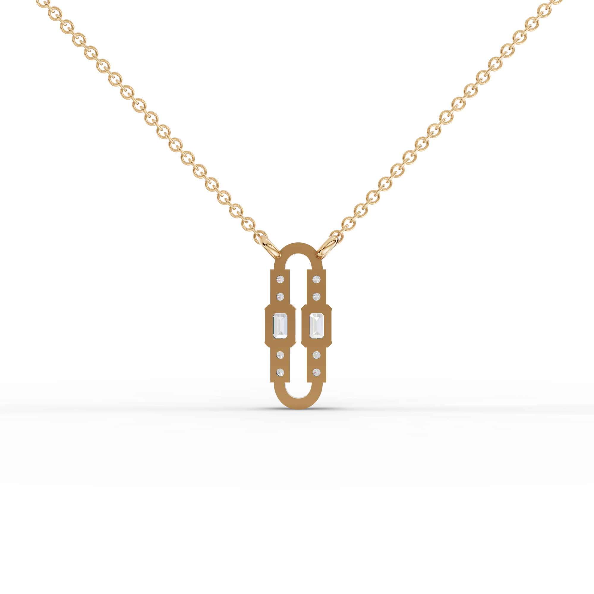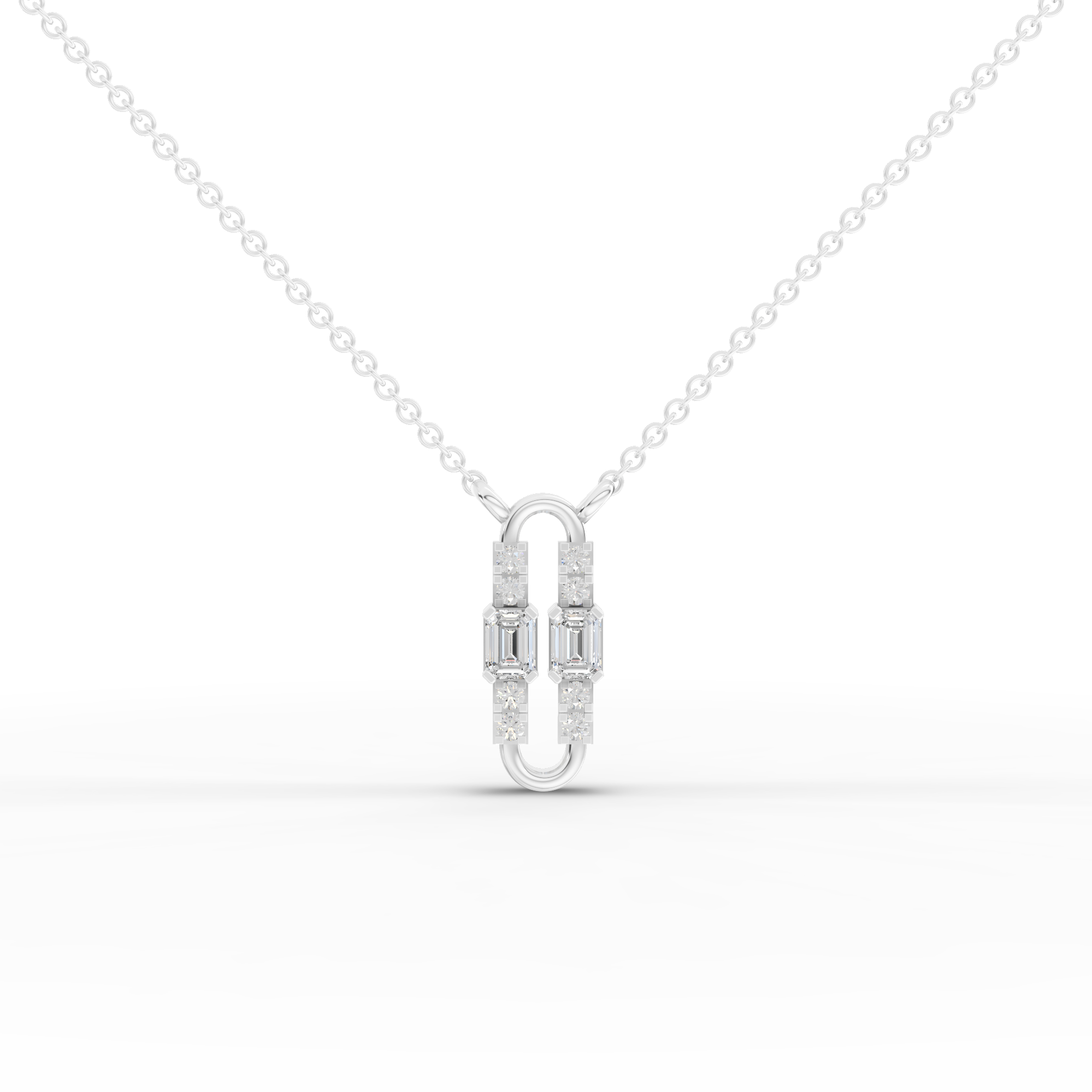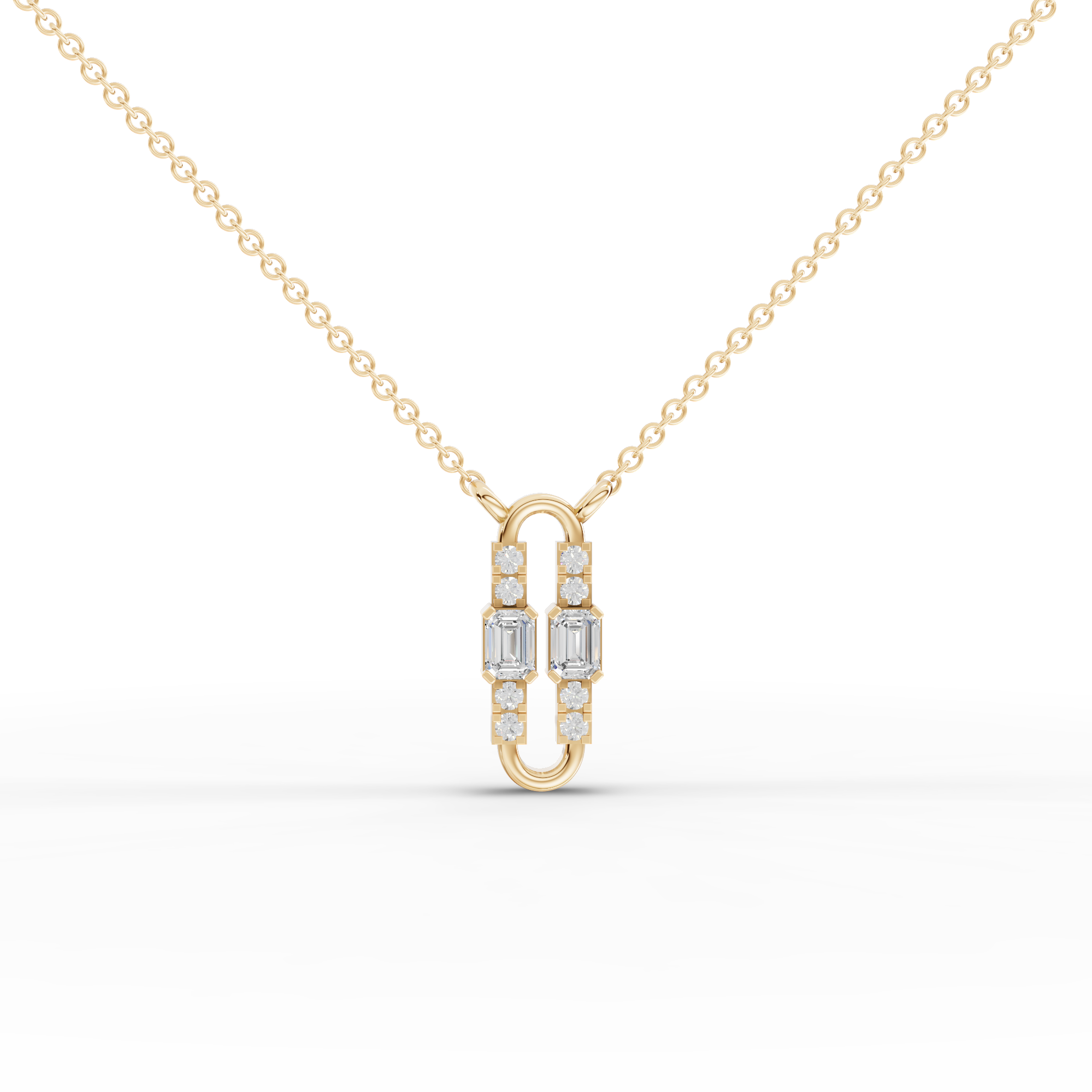 The pendant necklace features two emerald-cut lab-grown diamonds with a combined approximate weight of 0.18 ct, accented by eight round lab-grown diamonds totaling approximately 0.07 ct. The contrast between clean emerald lines and round brilliance creates a polished, contemporary silhouette that reflects light with subtle elegance.