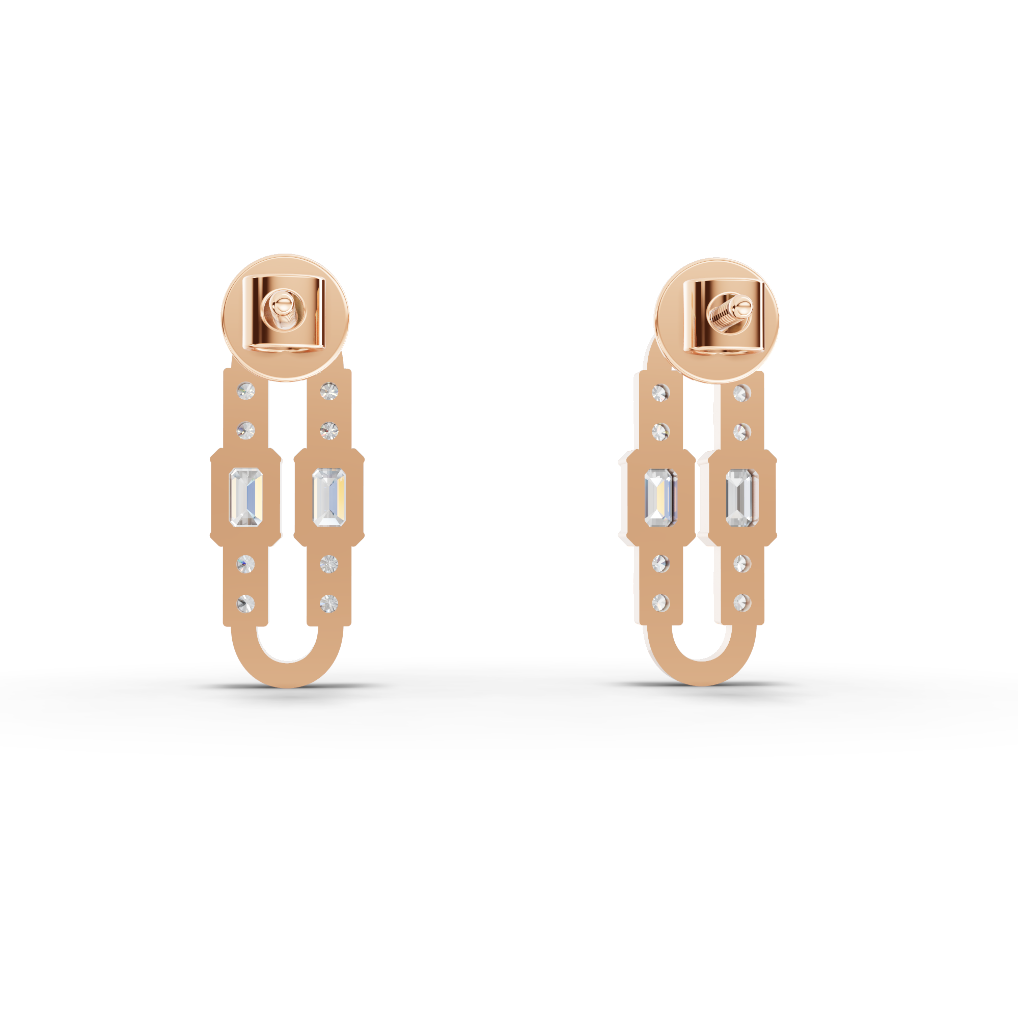 Completing the set, the earrings feature four emerald-cut lab-grown diamonds with a combined approximate weight of 0.36 ct, enhanced by sixteen round lab-grown diamonds totaling approximately 0.13 ct. The balanced composition delivers radiant symmetry and soft movement, offering a polished finishing touch that transitions effortlessly from day to evening.