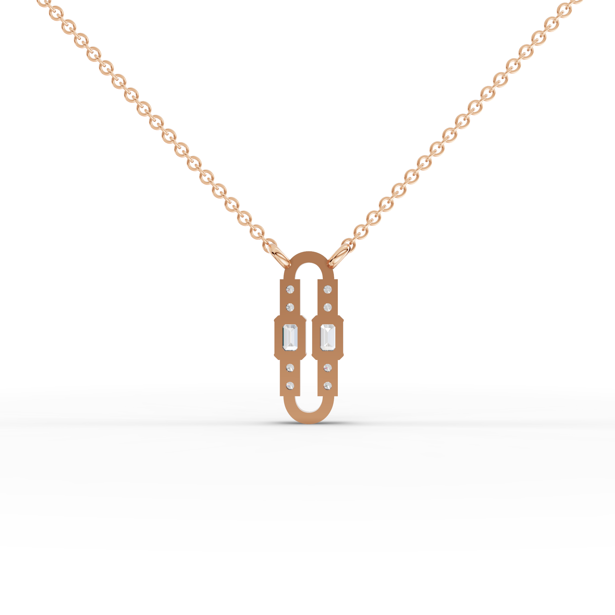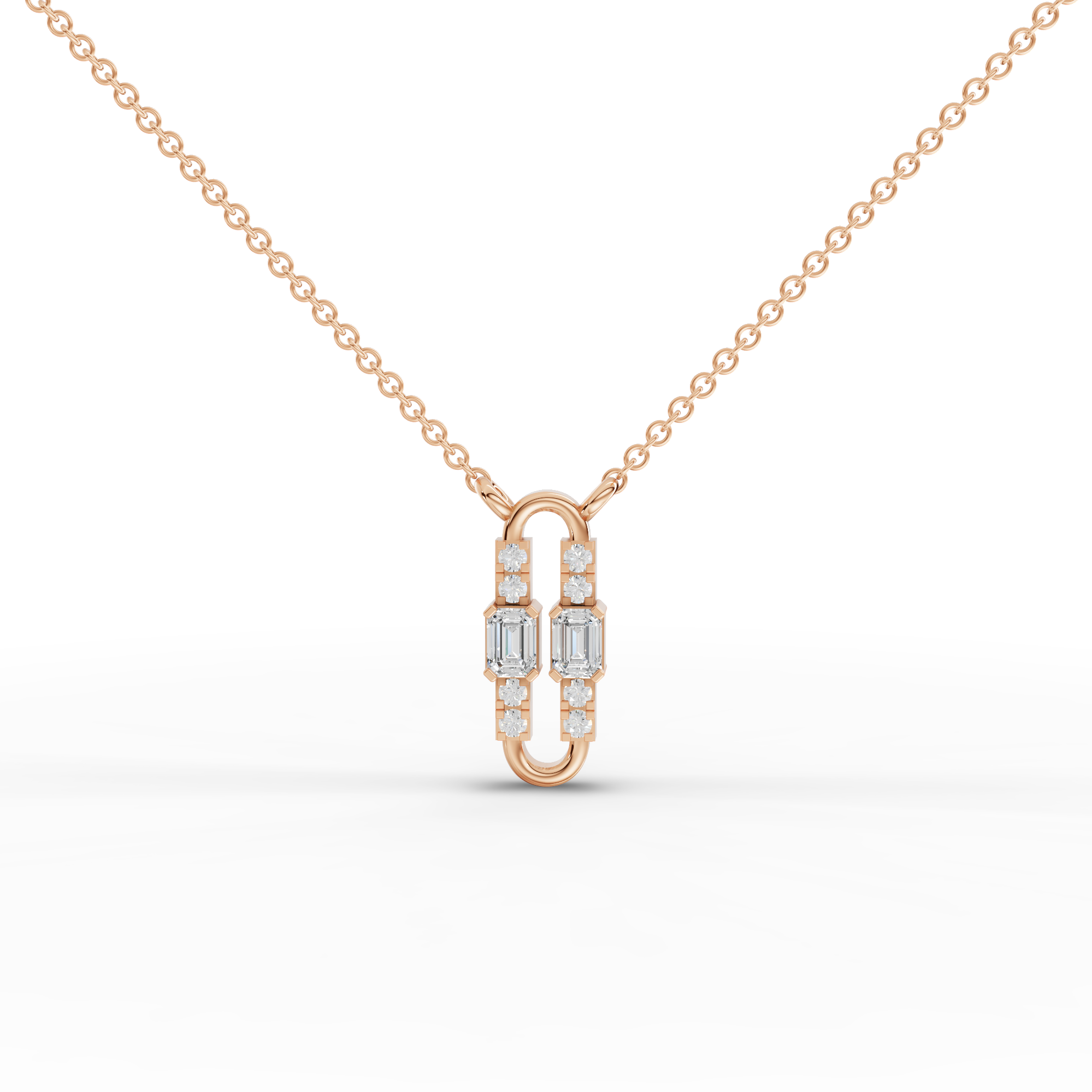 The pendant necklace features two emerald-cut lab-grown diamonds with a combined approximate weight of 0.18 ct, accented by eight round lab-grown diamonds totaling approximately 0.07 ct. The contrast between clean emerald lines and round brilliance creates a polished, contemporary silhouette that reflects light with subtle elegance.