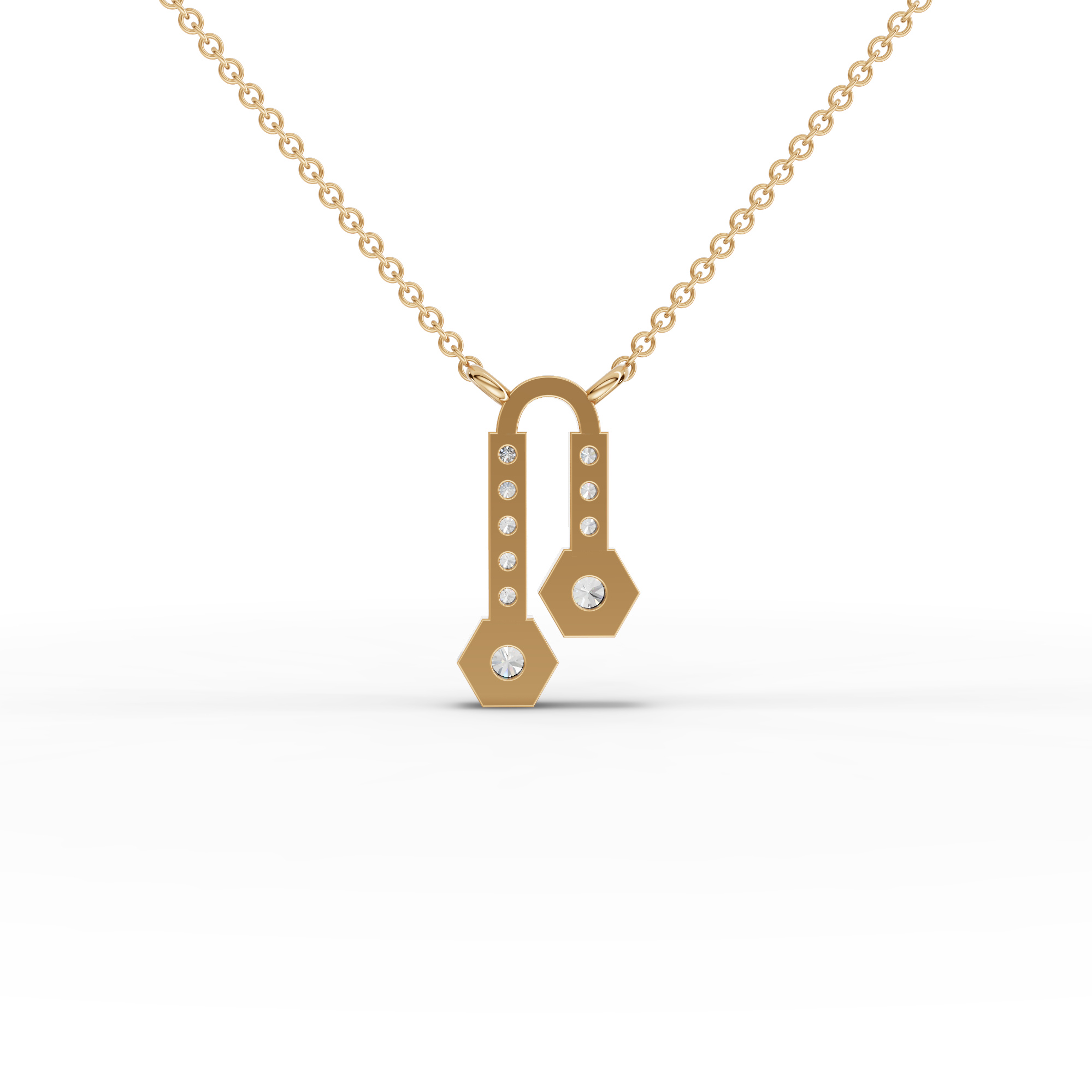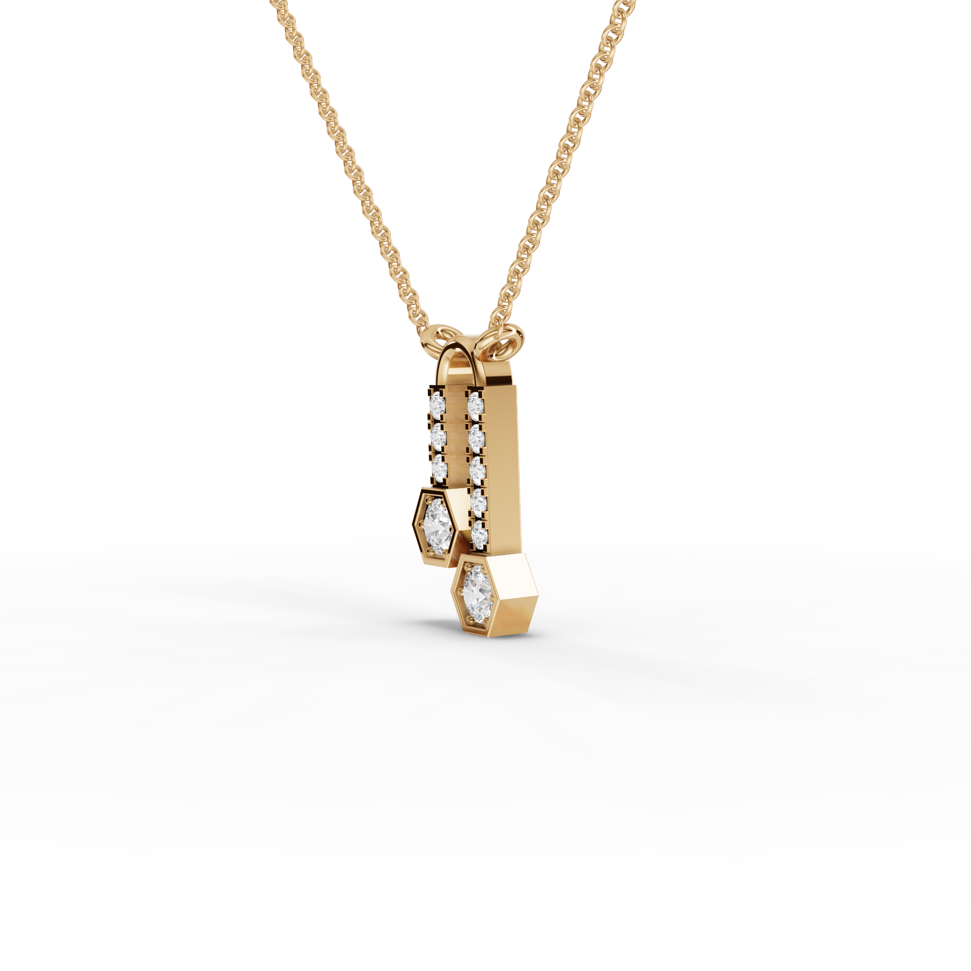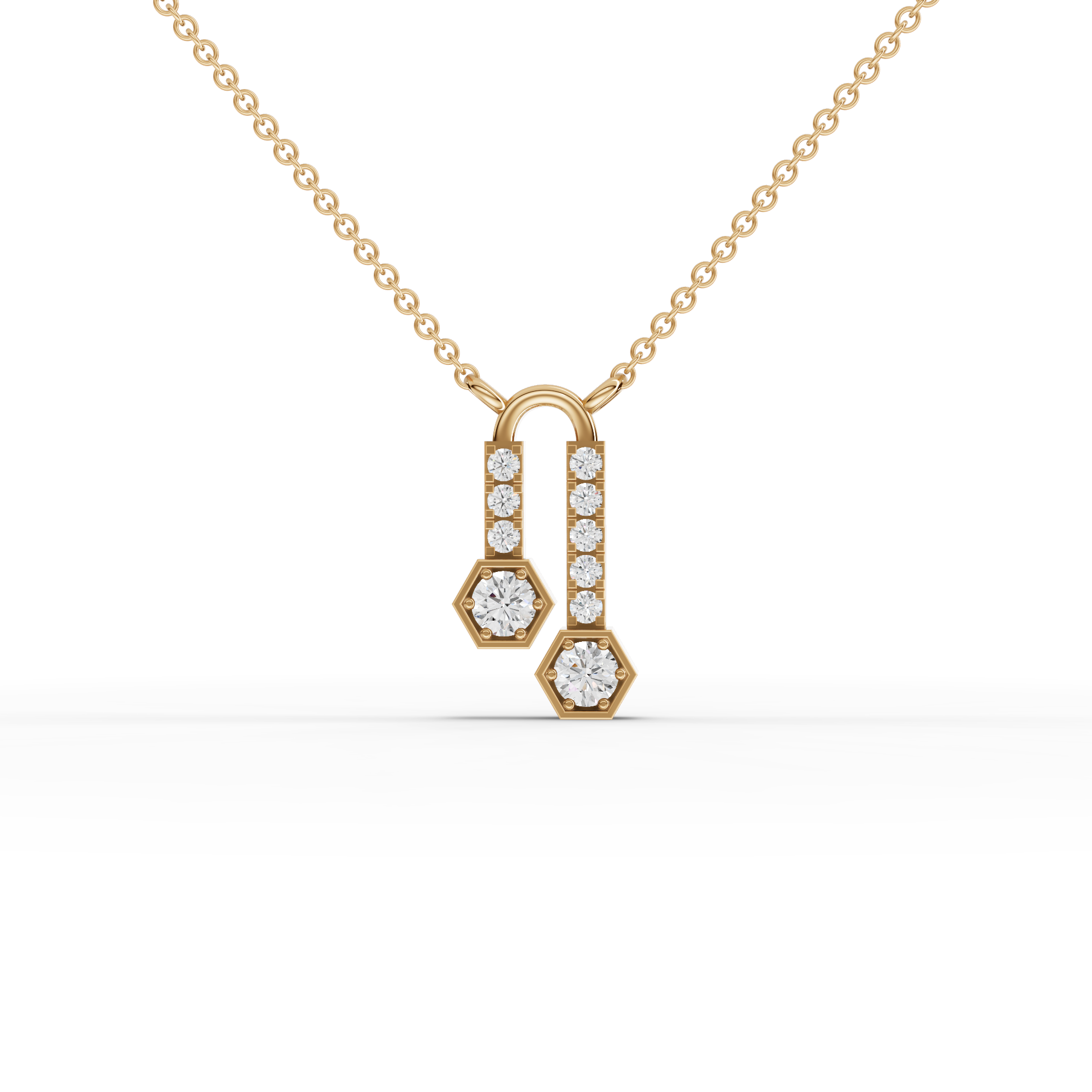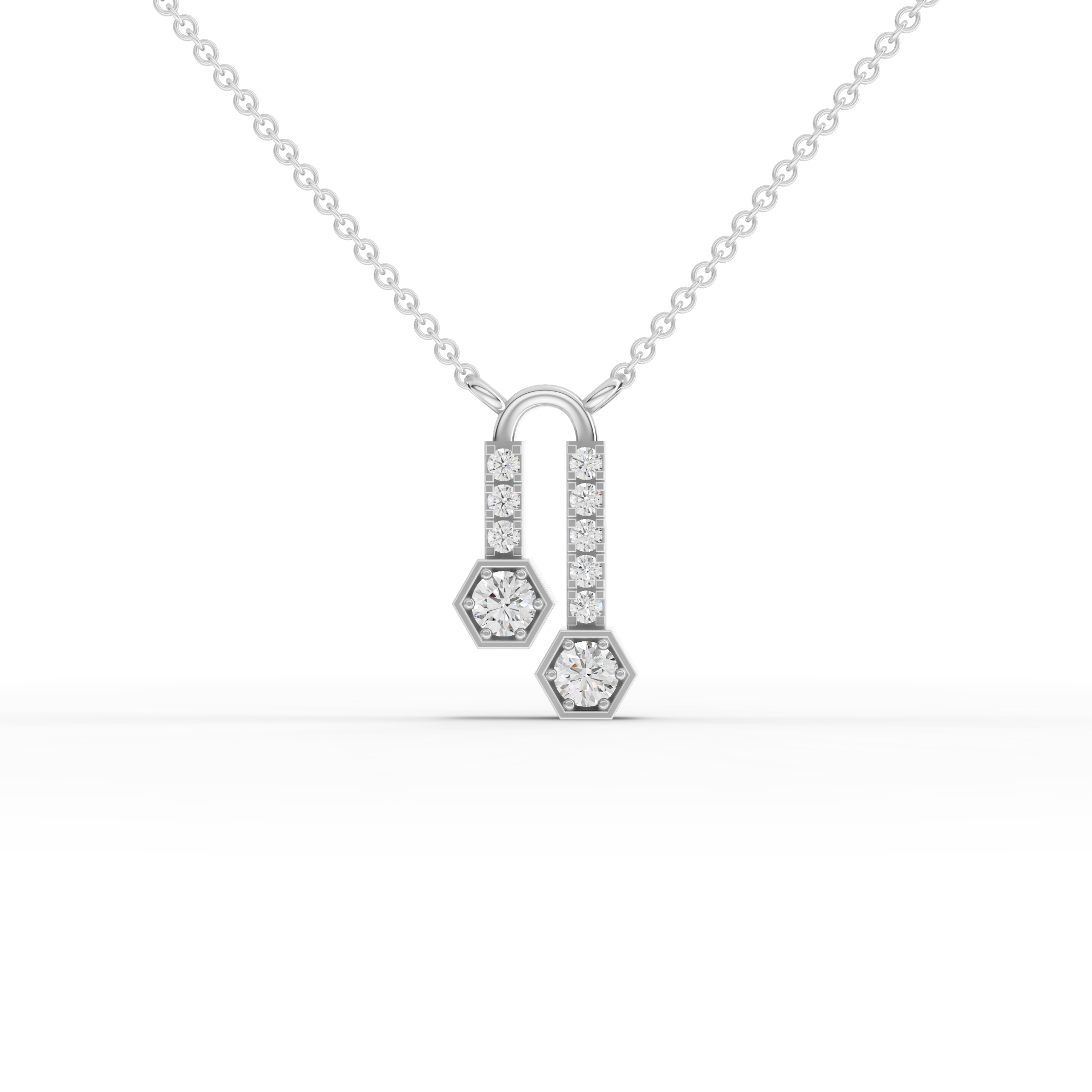 Lab-Grown Diamond Hexagon Drop Pendant Necklace with Pavé Bar Accents