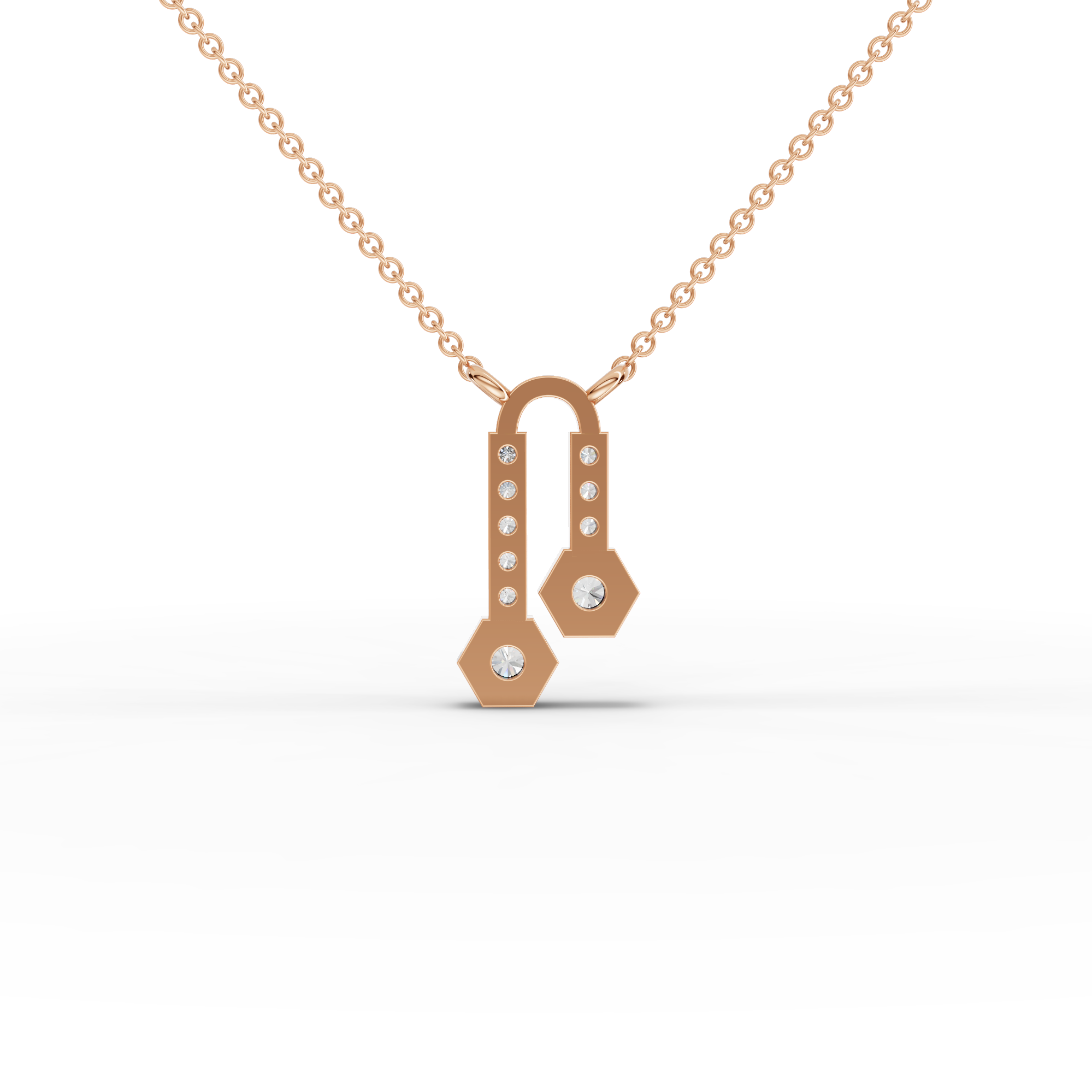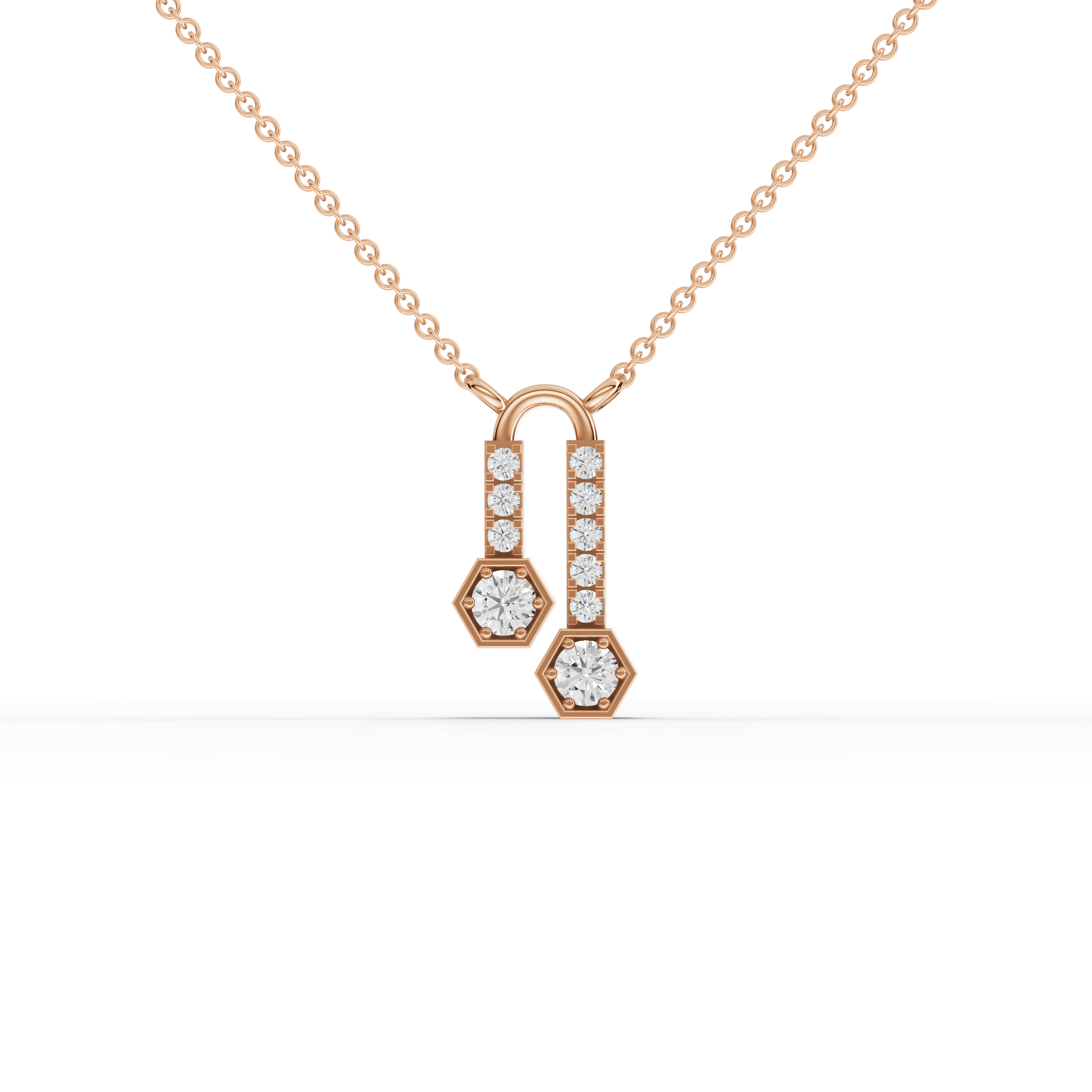 Lab-grown diamonds offer exceptional brilliance with complete transparency about their origin. This hexagon drop pendant features a striking geometric centerpiece complemented by pavé bar accents that catch light from every angle. The precision-cut hexagon shape creates a modern aesthetic while the pavé detailing adds sophisticated sparkle. Crafted with meticulous attention to detail, this necklace balances contemporary design with timeless elegance, making it an ideal choice for those seeking a distinctive piece that combines ethical sourcing with refined craftsmanship.