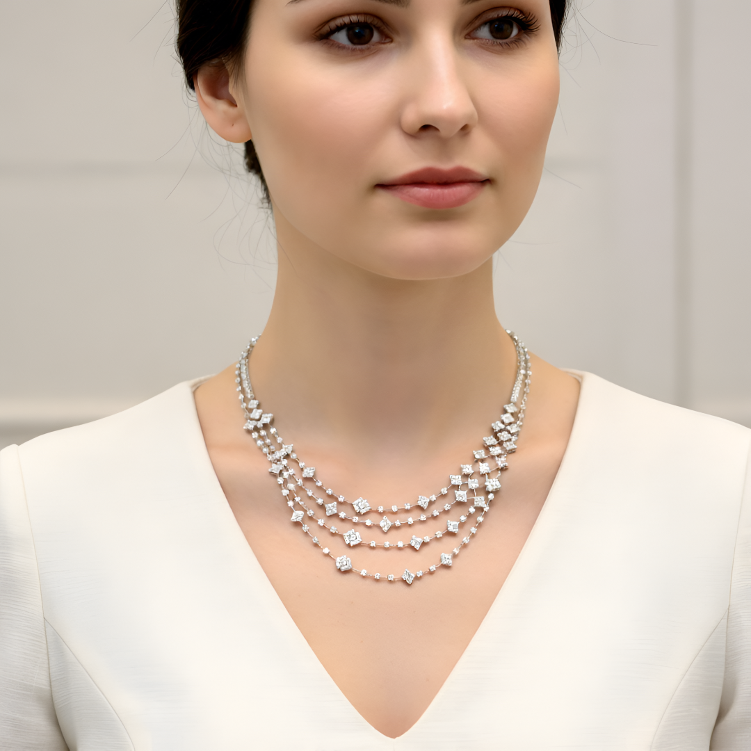 Lab-Grown Diamond Multi-Row Geometric Necklace