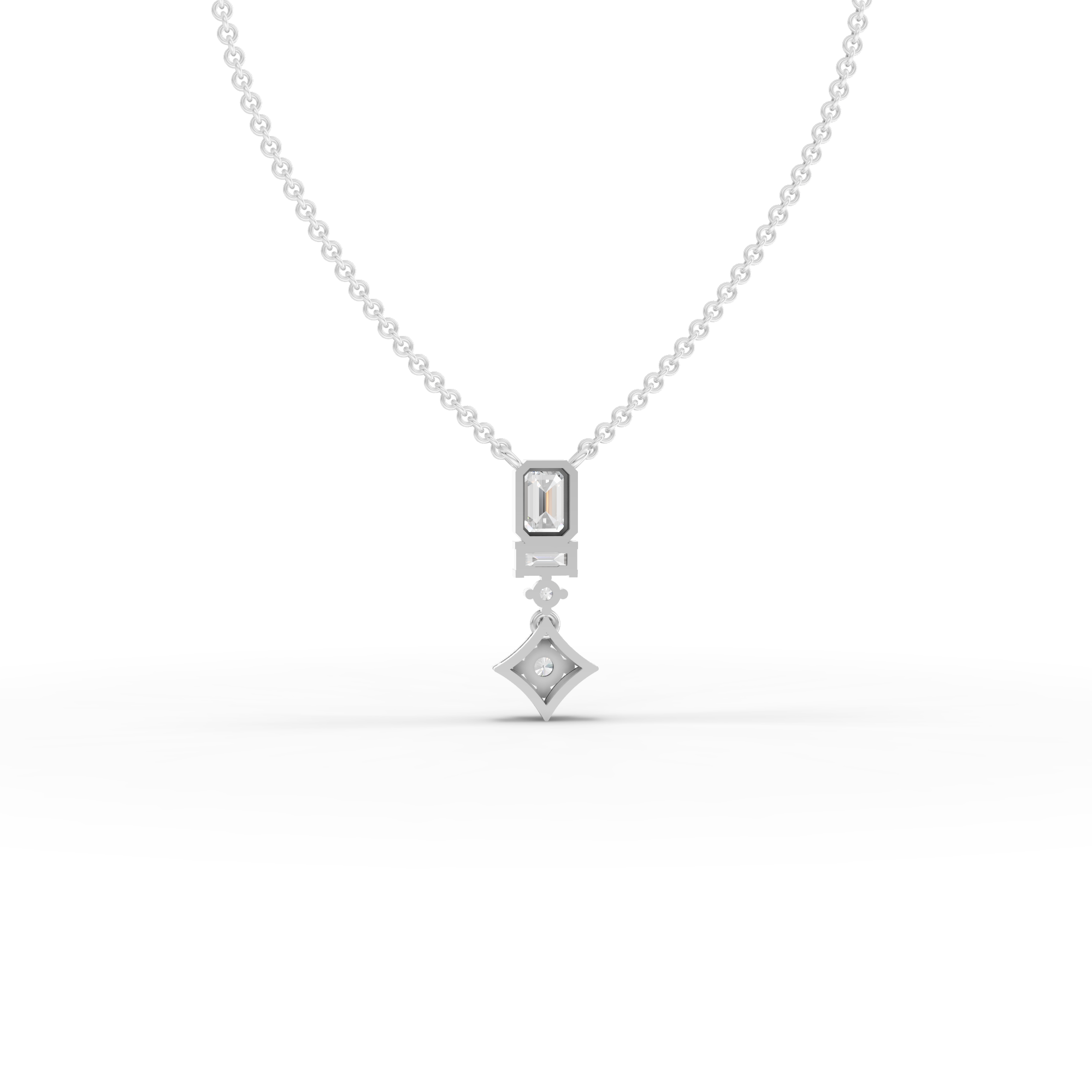 The pendant necklace features two emerald-cut lab-grown diamonds with a combined approximate weight of 0.55 ct, accented by two round lab-grown diamonds totaling approximately 0.13 ct. The contrast between sharp emerald facets and round brilliance creates a polished, contemporary silhouette with refined light play.