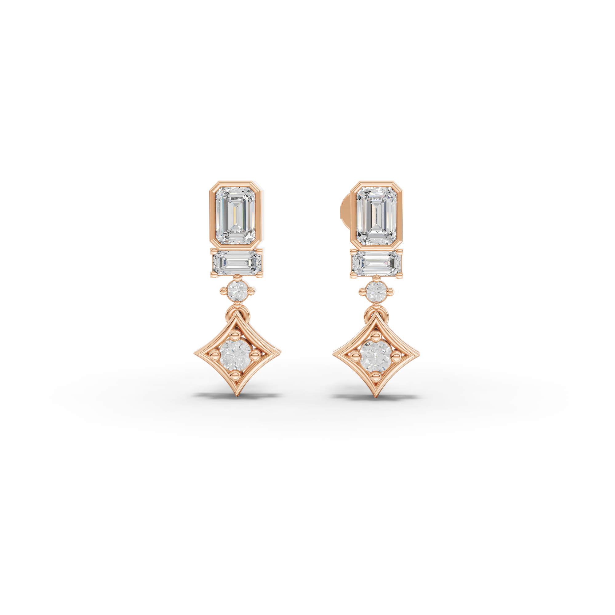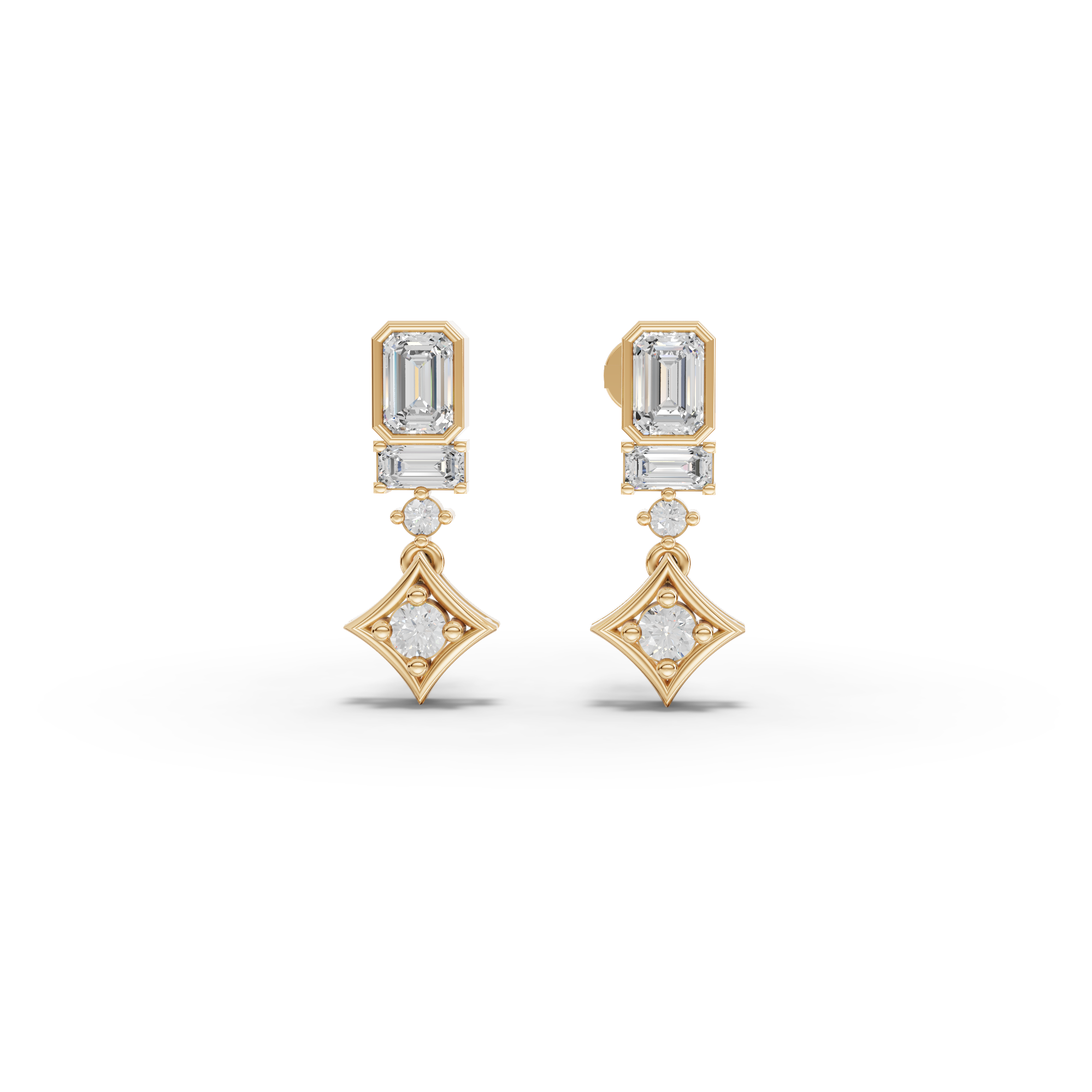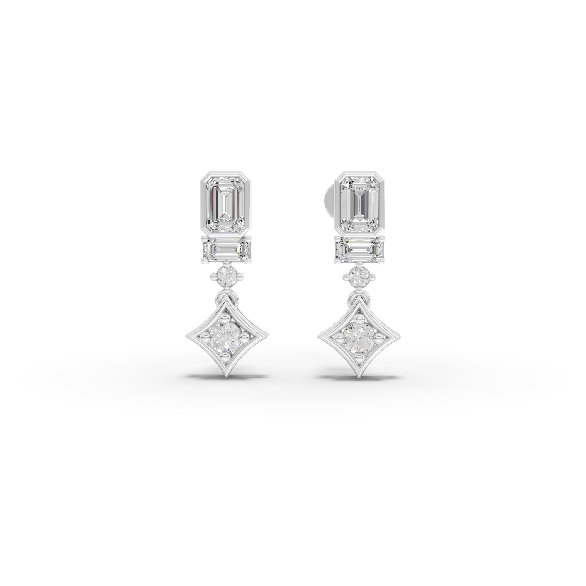 Completing the set, the earrings feature four emerald-cut lab-grown diamonds with a combined approximate weight of 1.10 ct, complemented by four round lab-grown diamonds totaling approximately 0.26 ct. The balanced composition delivers striking symmetry and luminous brilliance, creating a confident yet refined finish suitable for both day and evening wear.
