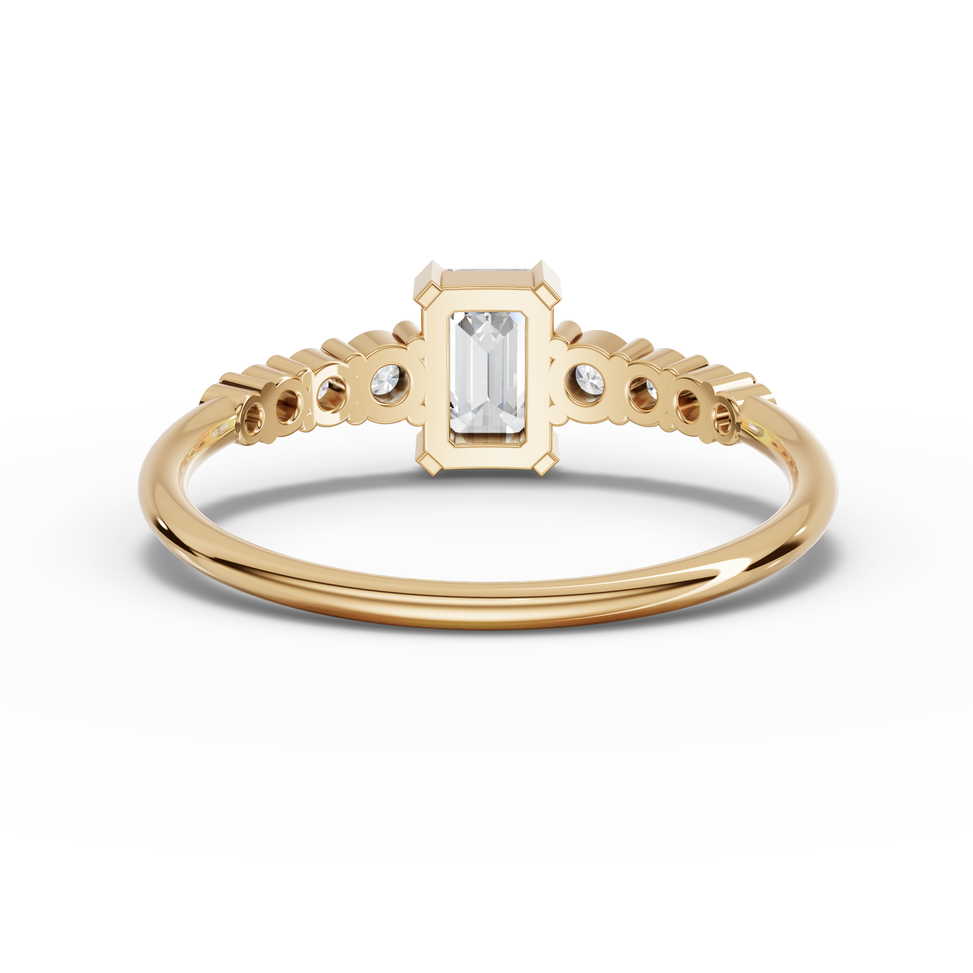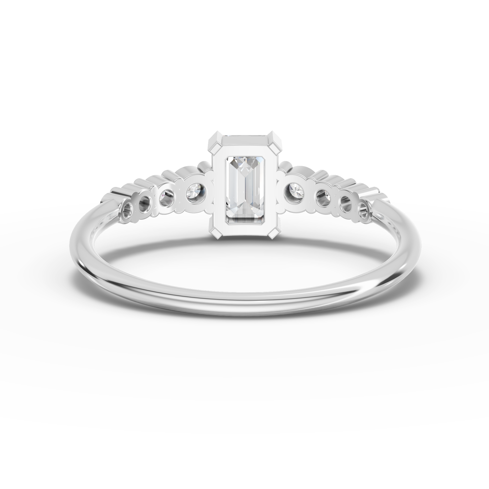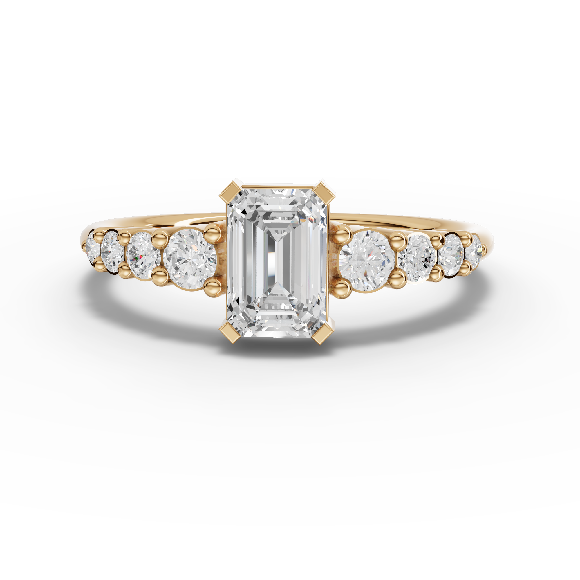 Lab-Grown Emerald-Cut Diamond Ring with Graduated Round Accent Band Elevate your collection with this sophisticated lab-grown diamond ring, featuring a striking emerald-cut center stone that commands attention with its geometric brilliance. The graduated round accent band adds refined dimension, creating a harmonious interplay of light and shadow. Lab-grown diamonds offer exceptional quality and clarity at a more accessible price point, without compromising on the brilliance and durability of natural stones. This piece combines contemporary design with timeless elegance, making it an ideal choice for engagements, anniversaries, or as a meaningful personal investment. Each stone is crafted to exacting standards, ensuring a ring that will captivate for generations.