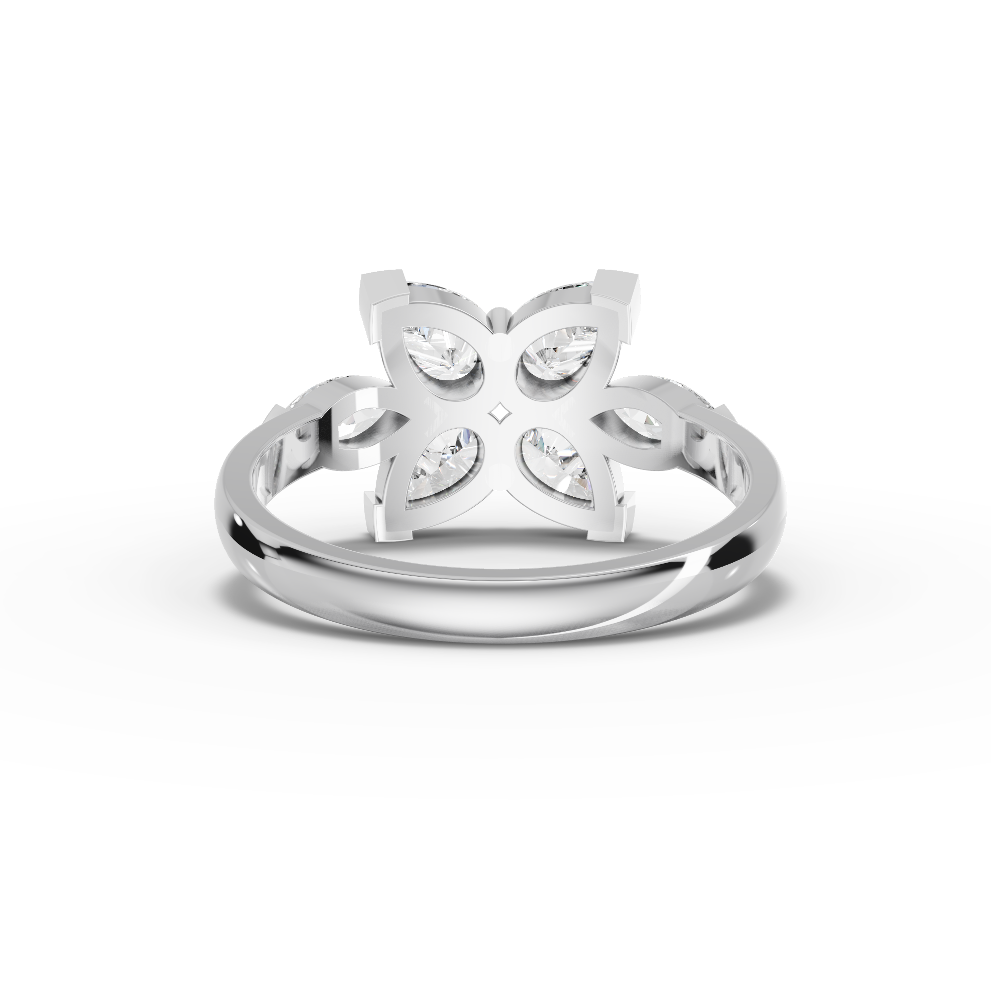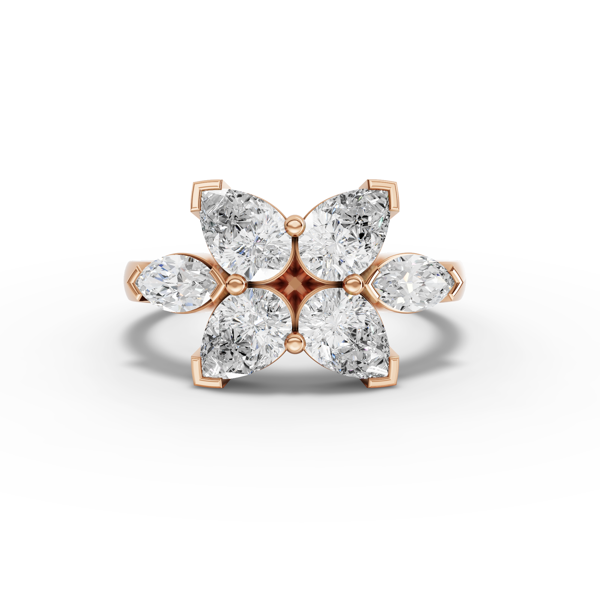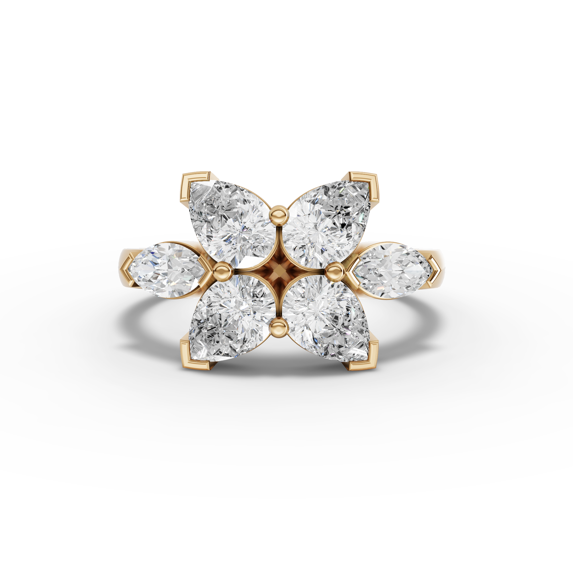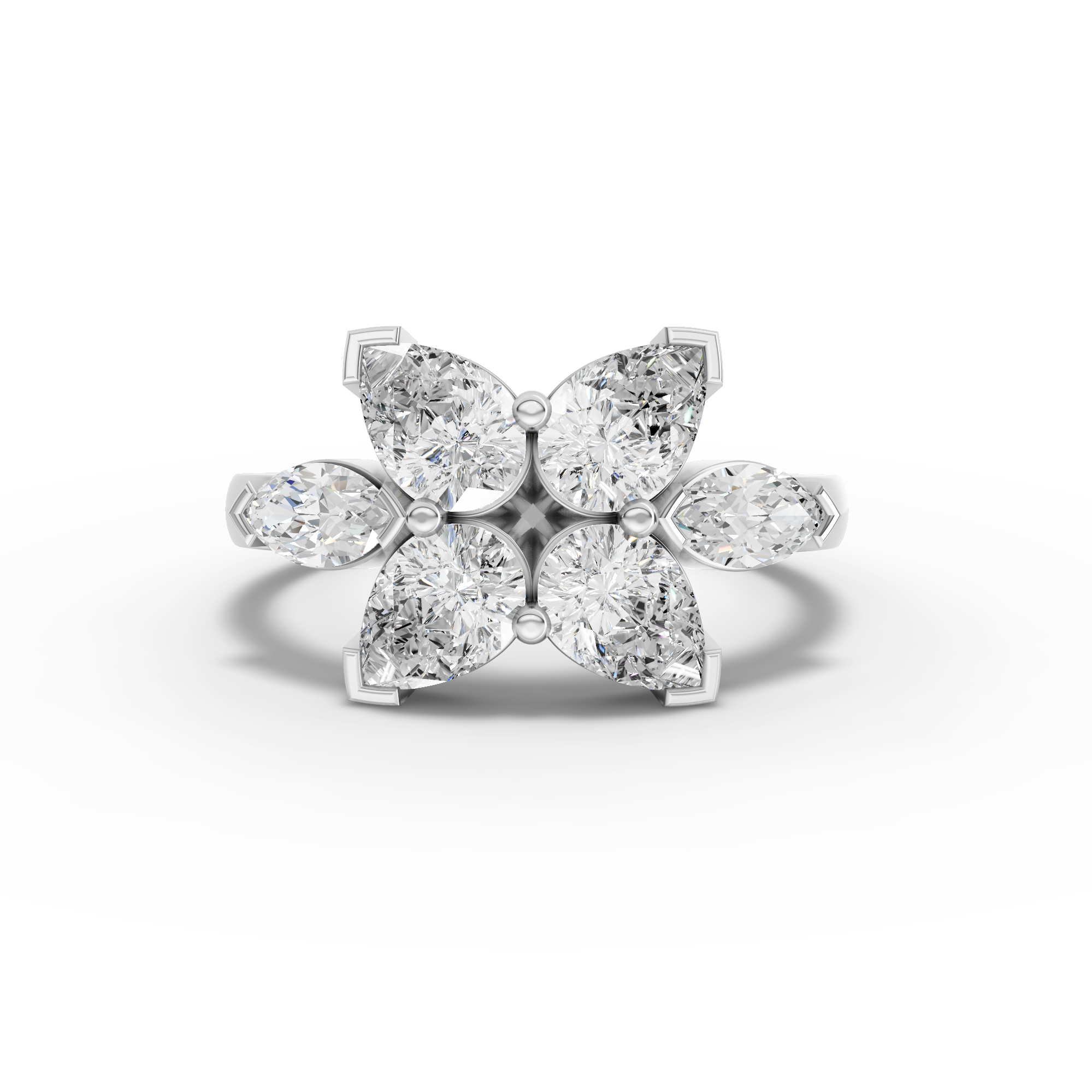 Lab-Grown Pear Diamond Floral Cluster Ring with Marquise Accents This sophisticated ring showcases a stunning pear-shaped lab-grown diamond as its centerpiece, surrounded by a delicate floral arrangement of marquise-cut accent stones. The thoughtful cluster design creates dimensional sparkle while maintaining an elegant, refined silhouette. Lab-grown diamonds offer exceptional quality and brilliance identical to mined stones, with the added benefit of ethical sourcing and environmental responsibility. Perfect for those seeking a distinctive engagement ring or statement piece that combines classic floral motifs with contemporary design sensibilities.