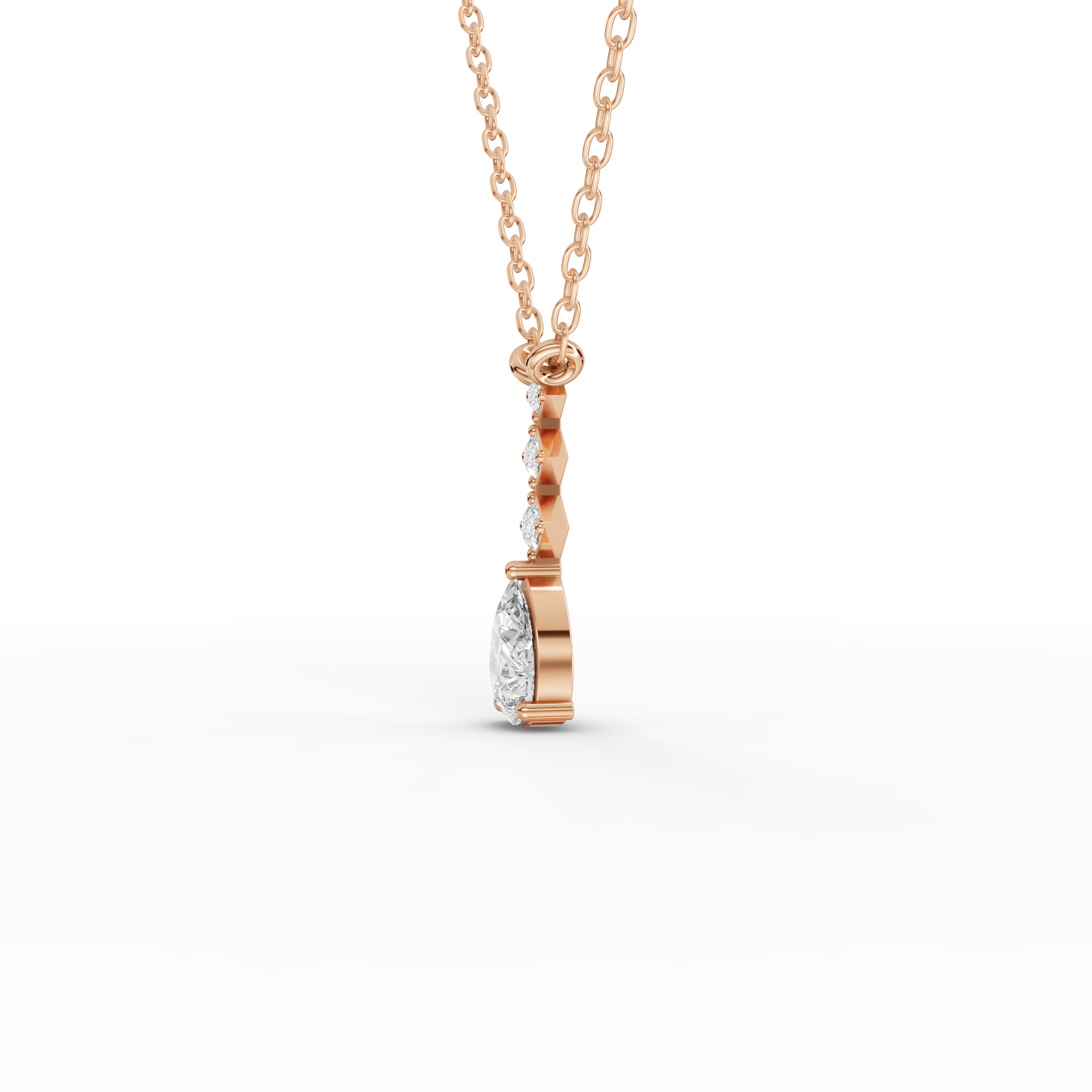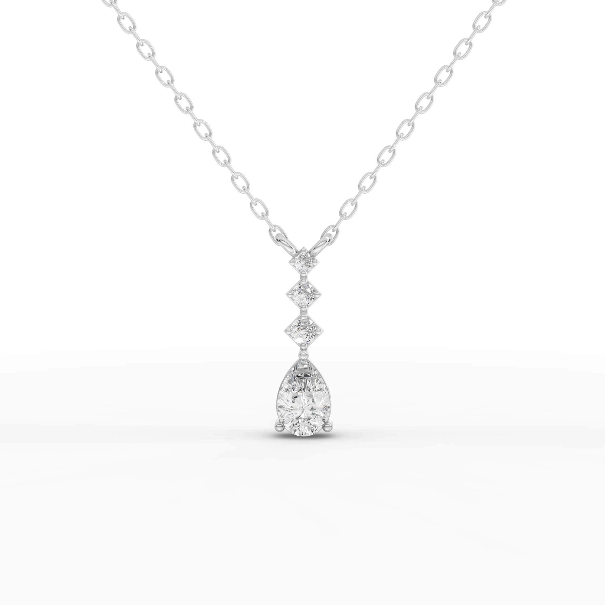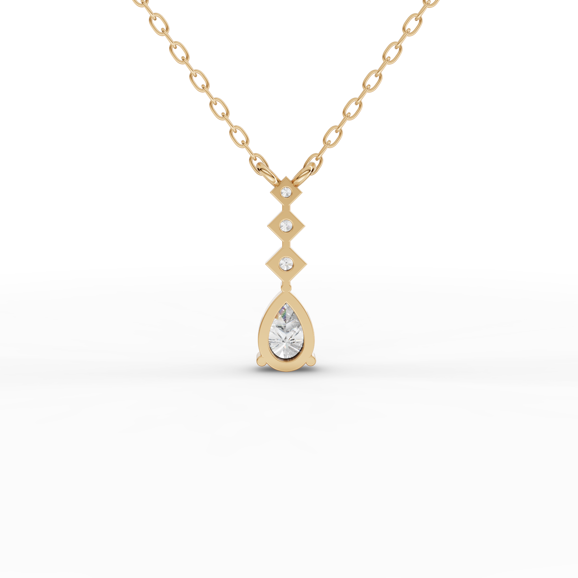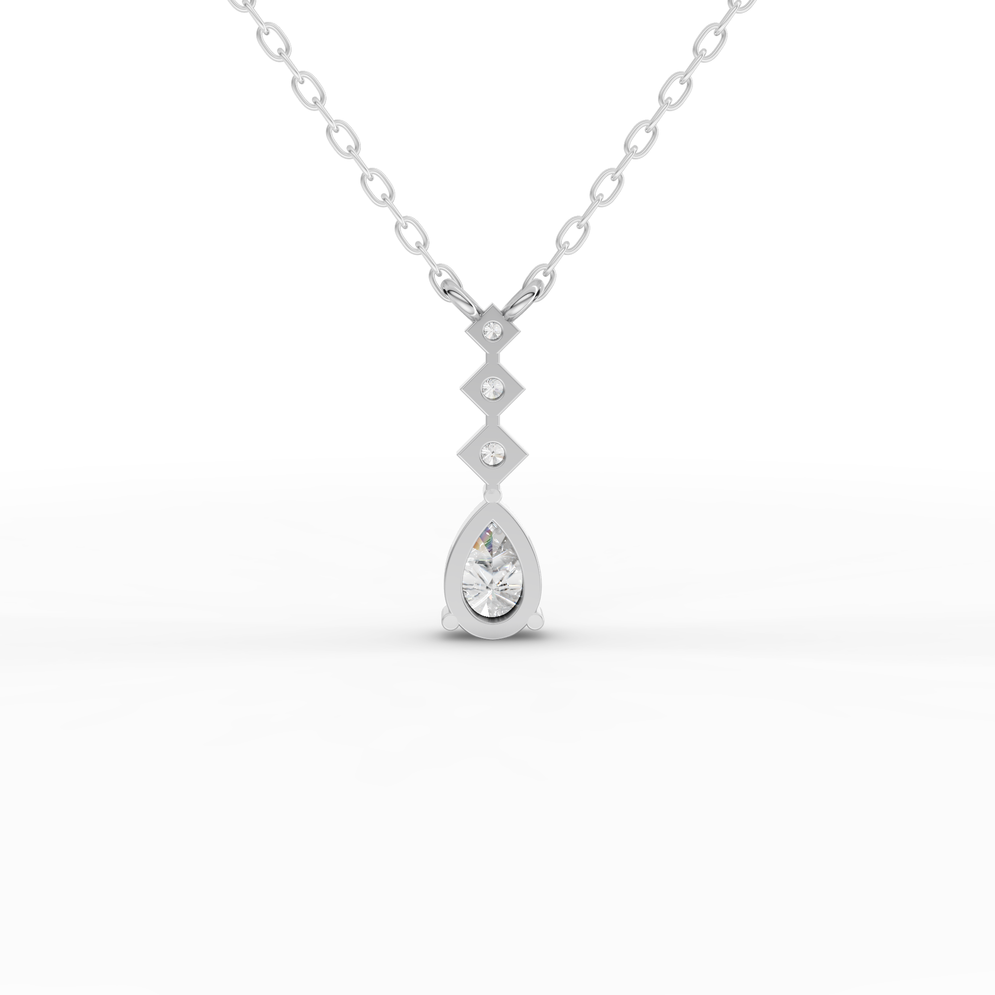 Lab-grown diamonds offer exceptional brilliance with a lighter environmental footprint than mined alternatives. This pear-shaped drop necklace features a gracefully elongated stone suspended from a delicate chain, complemented by geometric accent stations that add contemporary sophistication. The pear cut maximizes light reflection, creating dynamic sparkle with every movement. Perfect for elevating everyday wear or making a refined statement at special occasions, this piece combines timeless elegance with modern design sensibility. Crafted for those who appreciate fine jewelry without compromise.