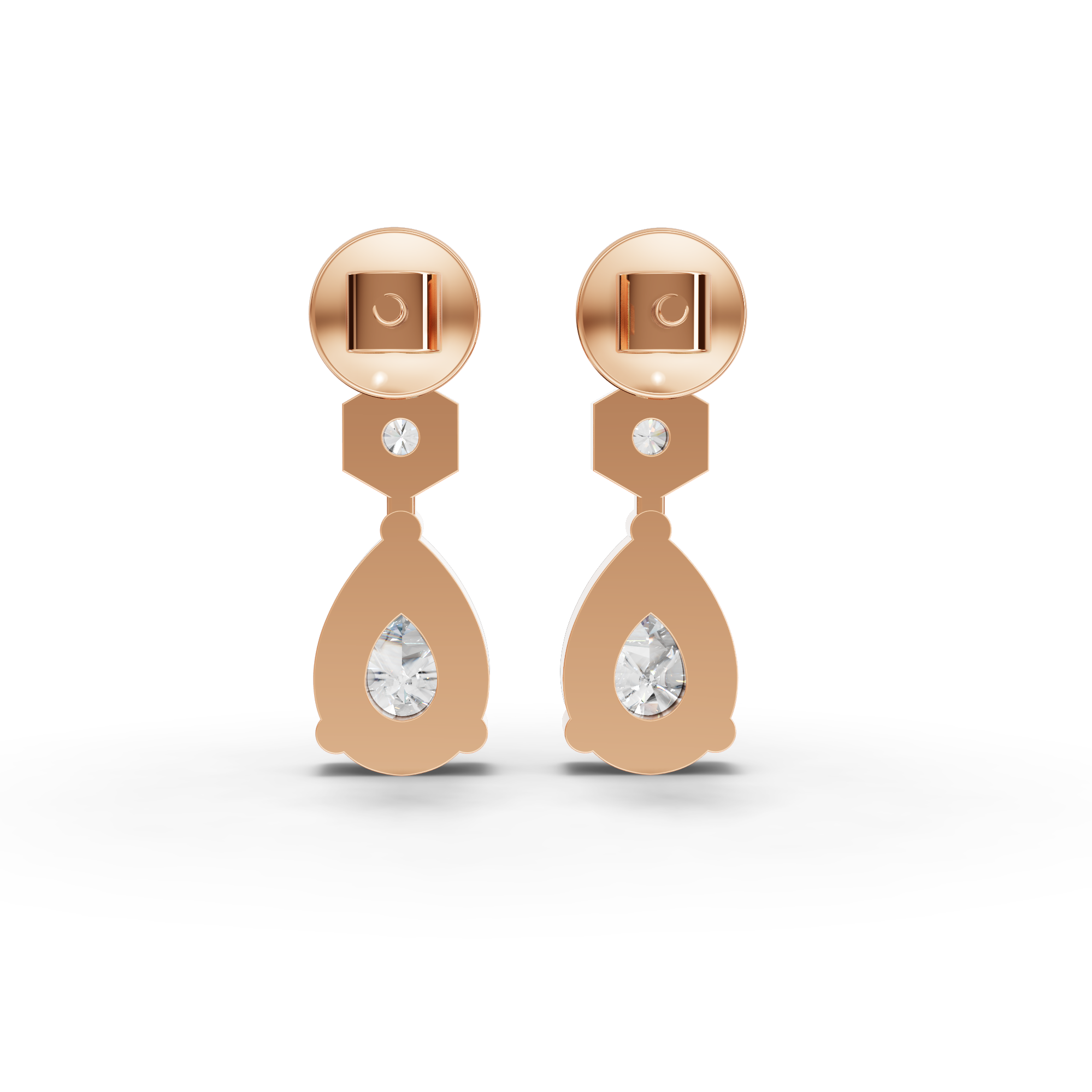 The matching drop earrings feature two pear-shaped lab-grown diamonds with a combined approximate weight of 0.71 ct, enhanced by twenty round accent diamonds totaling approximately 0.31 ct, offering graceful motion and luminous brilliance with a modern, architectural profile.