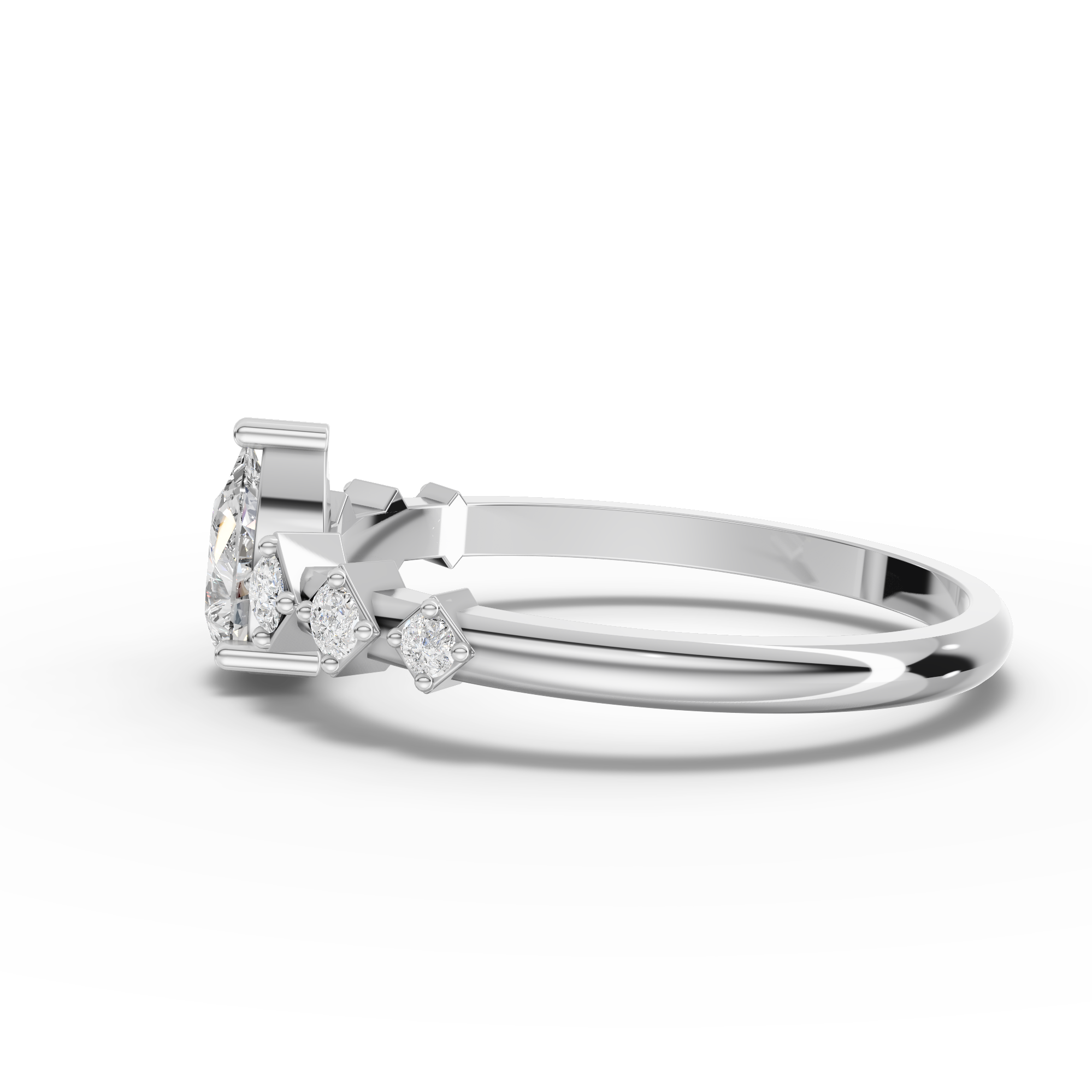Completing the set, the geometric accent band ring showcases two pear-shaped lab-grown diamonds with a combined approximate weight of 0.71 ct, accented by six round diamonds totaling approximately 0.13 ct. The balanced layout and clean lines create a modern statement with refined detail and everyday versatility.