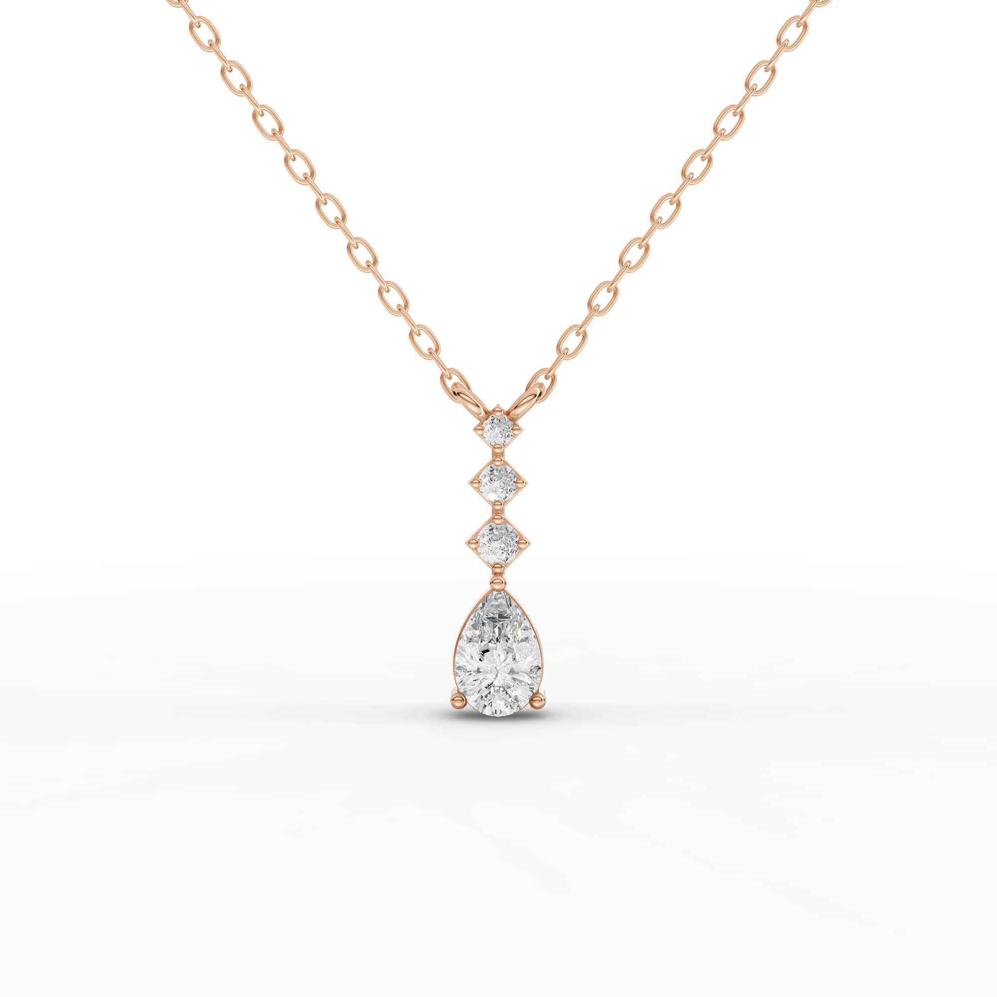 The drop pendant necklace is centered with a pear-shaped lab-grown diamond weighing approximately 0.35 ct, accented by three round diamonds totaling approximately 0.07 ct. The geometric arrangement creates a refined vertical profile with subtle sparkle and architectural precision.