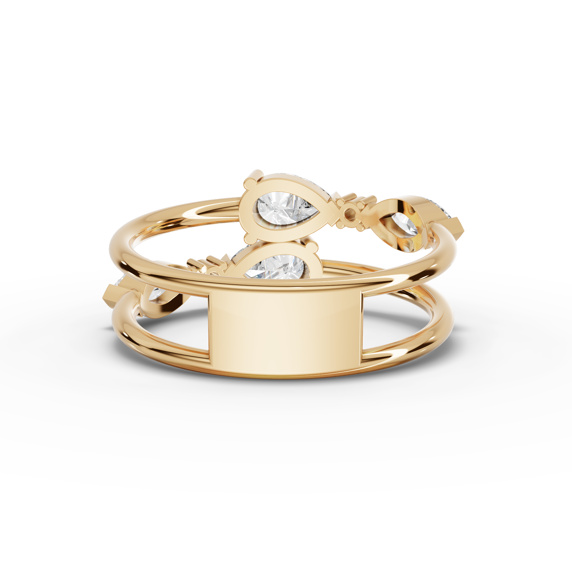 This contemporary ring showcases a striking pear-cut lab-grown diamond suspended in an open-ended setting that allows light to flow freely through the stone. Delicate round accent diamonds frame the design, enhancing brilliance without overwhelming the focal point. The open architecture creates an illusion of weightlessness while maintaining structural integrity, making it comfortable for daily wear. Lab-grown diamonds provide full transparency and ethical sourcing, delivering luxury with modern values. A versatile statement piece that transitions seamlessly from professional settings to evening occasions.