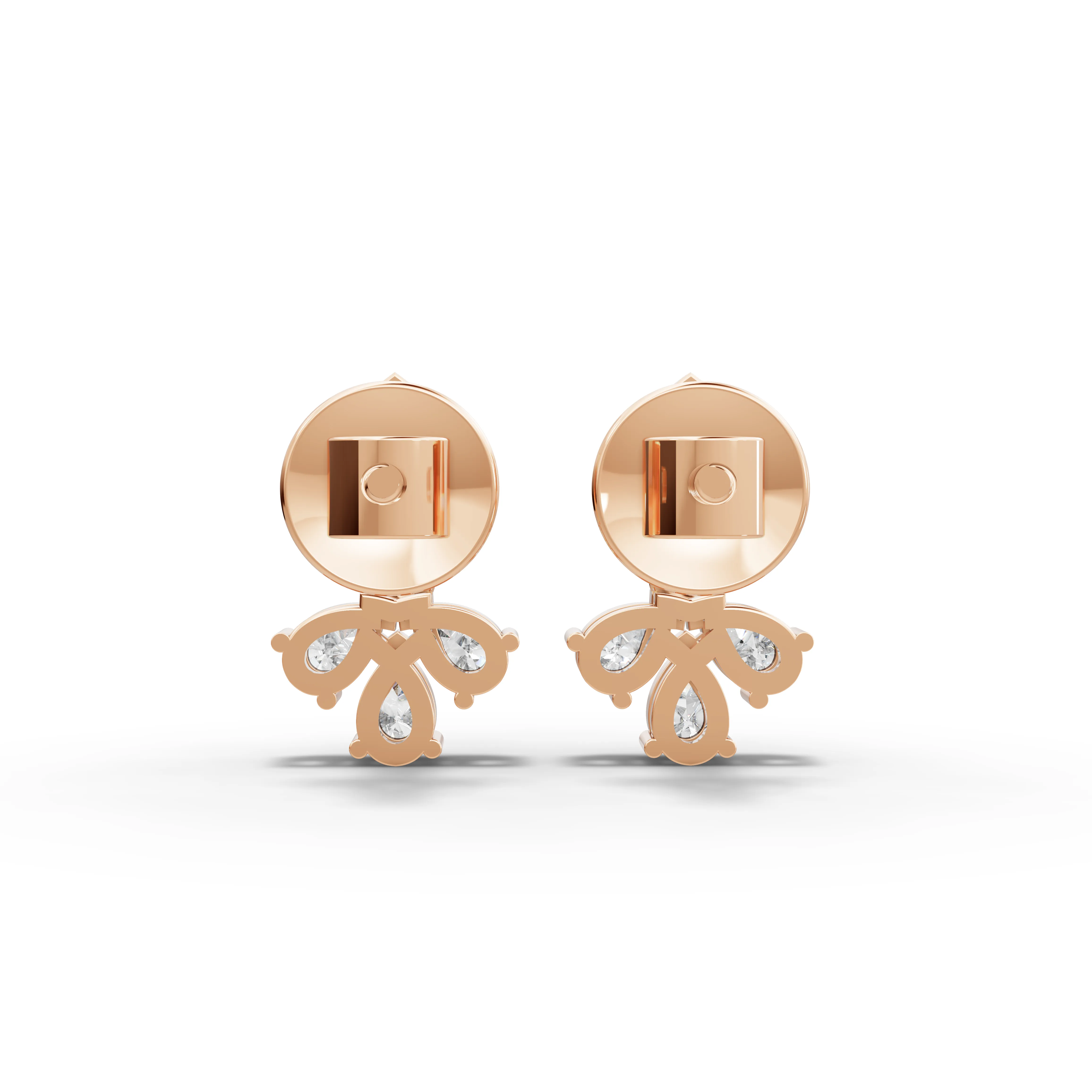 The matching stud earrings are centered with two marquise-cut lab-grown diamonds totaling approximately 0.20 ct, surrounded by six pear-shaped lab-grown diamonds with a combined approximate weight of 0.33 ct, creating a balanced cluster that sits elegantly on the ear.