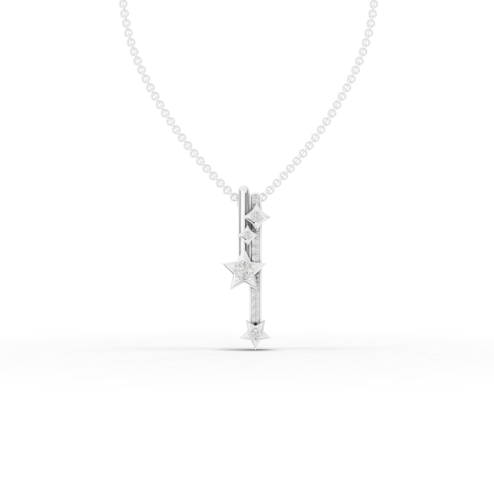 Modern Lab Grown Diamond Vertical Bar Star Jewelry Set with Drop Earrings and Pendant Necklace