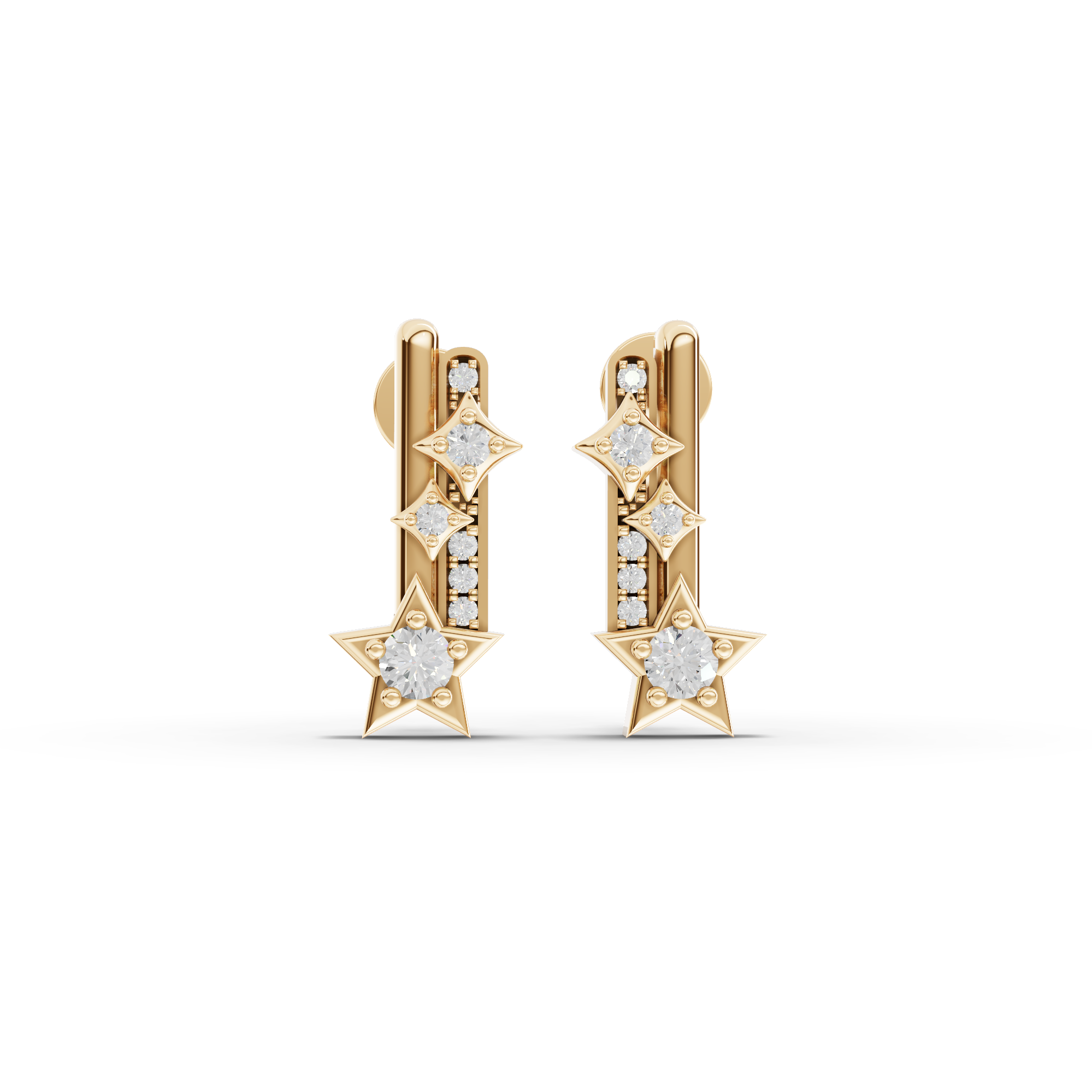 The earrings feature fourteen round lab-grown diamonds with a combined approximate weight of 0.42 ct, offering radiant symmetry and refined brilliance. Designed to sit comfortably on the ear, they provide a luminous yet wearable presence that transitions seamlessly from everyday styling to evening occasions.