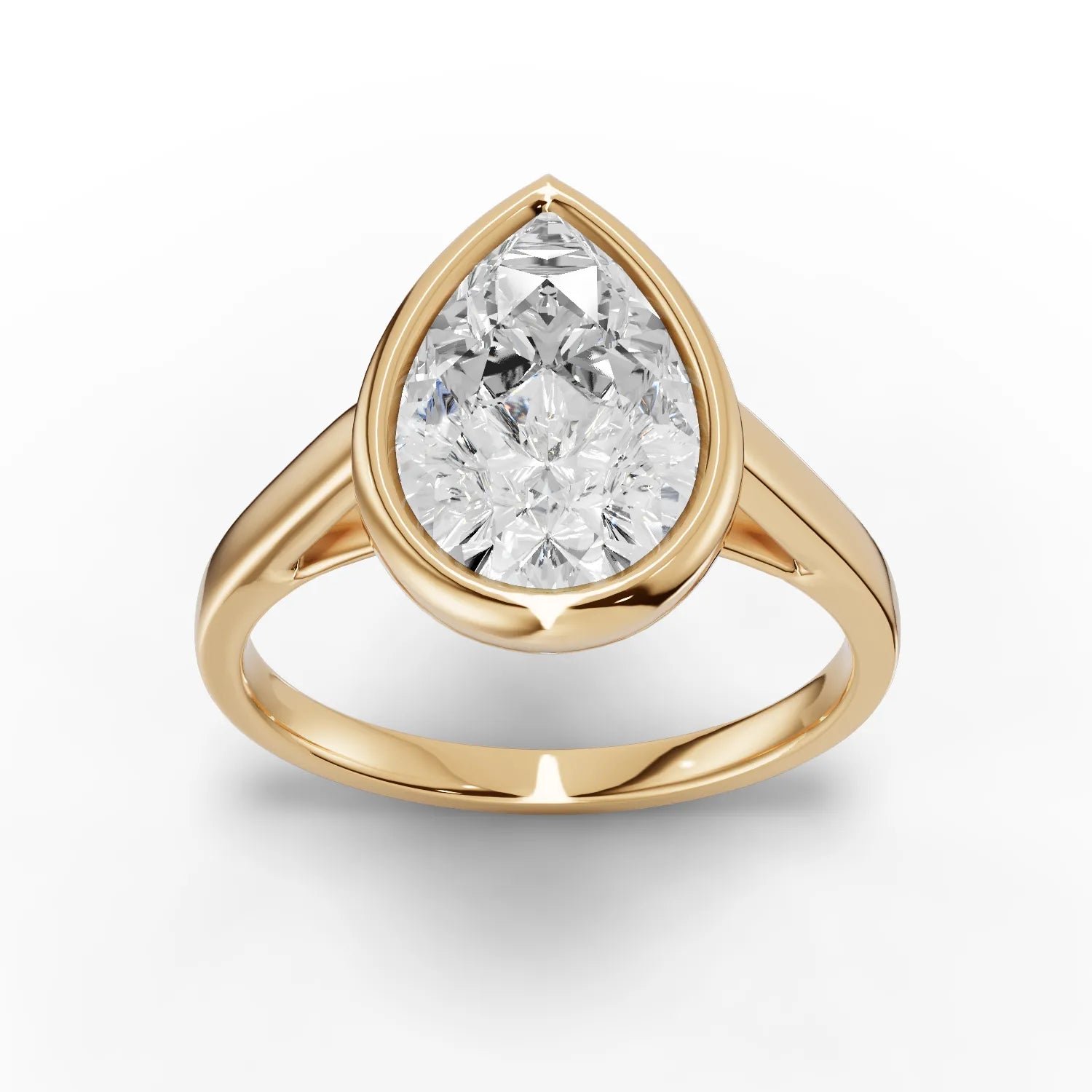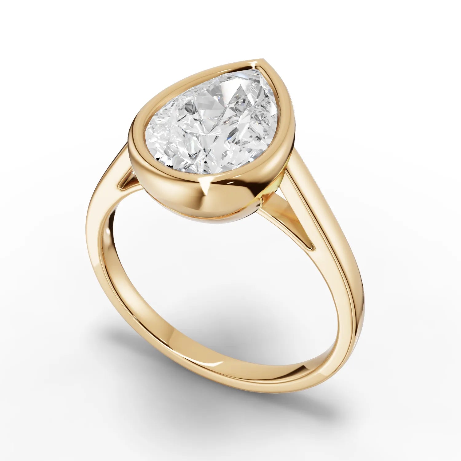 This sophisticated solitaire ring showcases a pear-cut lab-grown diamond secured in a sleek bezel setting. The modern bezel design encircles the diamond's perimeter, offering enhanced protection while creating a smooth, contemporary silhouette. The pear shape's distinctive teardrop form combines the brilliance of a round cut with the elegance of a marquise, creating an elongating effect on the finger. Lab-grown diamonds provide the same optical, chemical, and physical properties as mined diamonds, ensuring exceptional sparkle and durability. The minimalist setting allows the diamond's unique shape to take center stage, making this piece ideal for those who appreciate refined, timeless design with a modern edge.