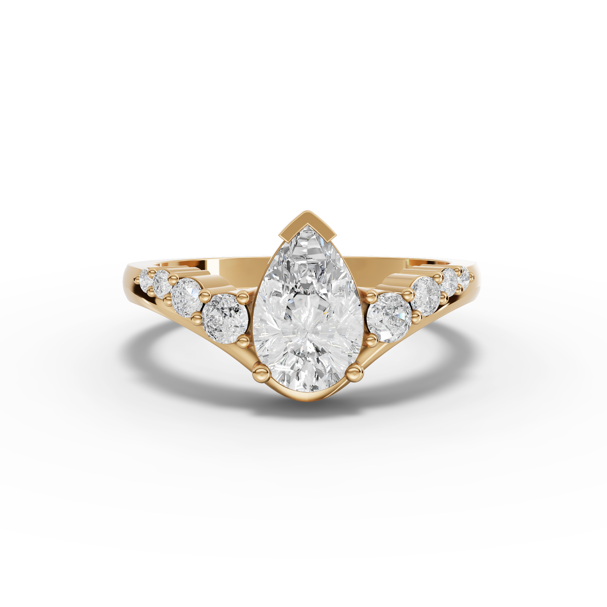Pear Shaped Lab Grown Diamond Engagement Ring Discover timeless elegance with this stunning pear-shaped lab-grown diamond engagement ring. Crafted with precision, this ring features a sophisticated elongated cut that maximizes brilliance and creates a flattering silhouette on the hand. Lab-grown diamonds offer the same optical and physical properties as mined diamonds while providing exceptional value and ethical sourcing. The pear shape's unique geometry combines the best of round and marquise cuts, delivering exceptional sparkle and a distinctive look. Perfect for those seeking a meaningful symbol of commitment without compromise on quality or conscience.