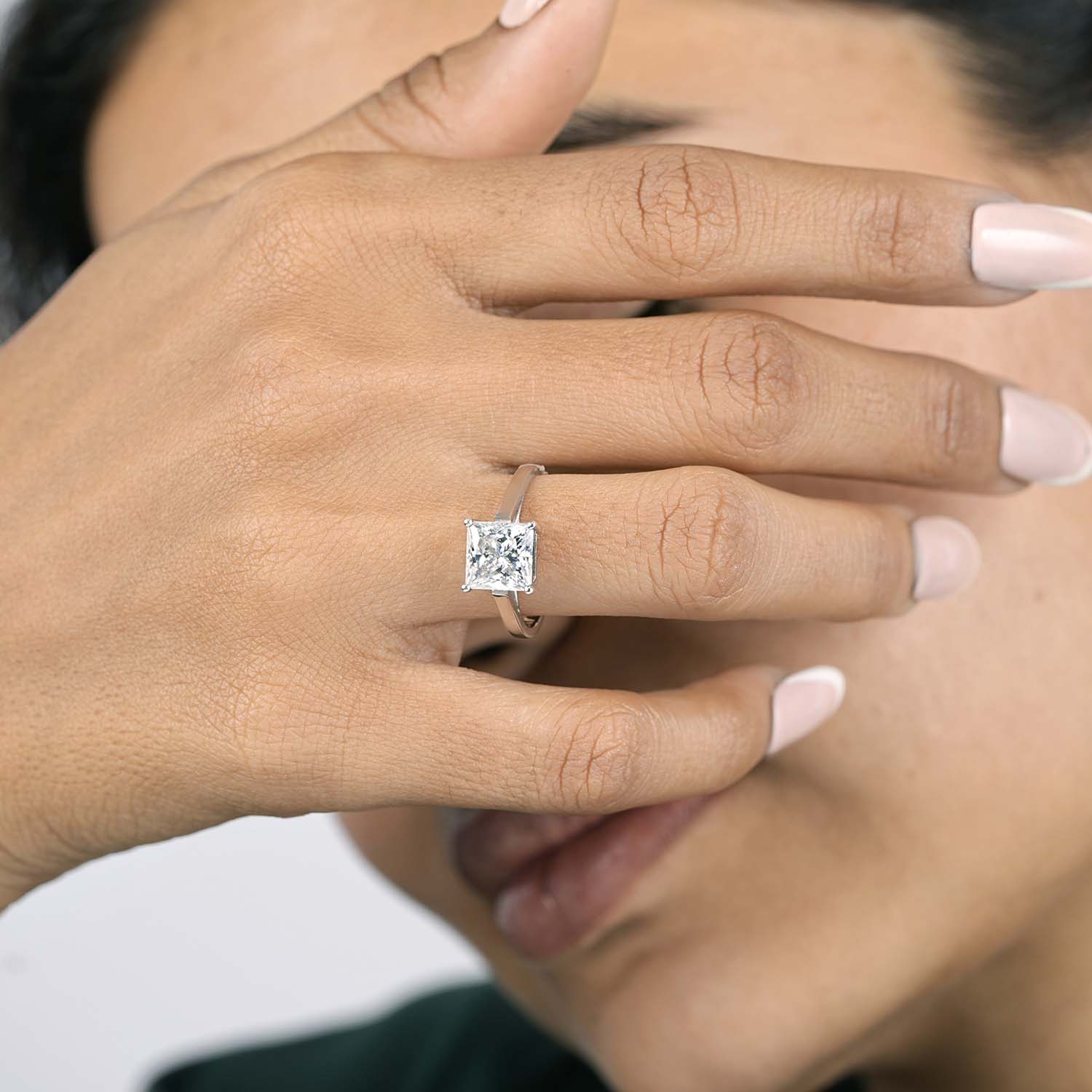 Elevate your engagement with this stunning four-prong solitaire featuring a princess cut lab diamond. Meticulously crafted to showcase the stone's brilliant sparkle and geometric elegance, this timeless design offers exceptional clarity and fire. Lab diamonds deliver the same optical and physical properties as mined diamonds while providing superior value and ethical sourcing. The secure four-prong setting protects your precious stone while allowing maximum light penetration for unparalleled radiance. A sophisticated choice for those who appreciate fine craftsmanship and responsible luxury.
