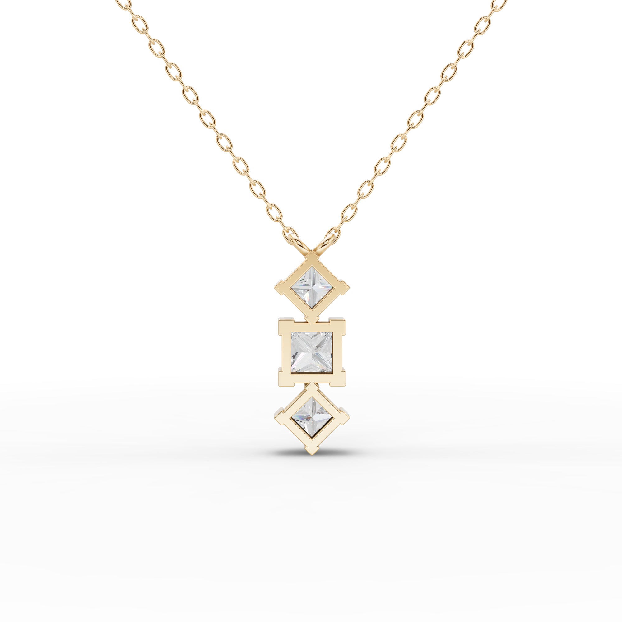 This Princess-Cut Lab-Grown Diamond Geometric Jewelry Set brings together a coordinated drop pendant necklace, matching geometric drop earrings, and a three-stone ring, unified by the clean lines and brilliance of princess-cut diamonds. Crafted exclusively with E–F color, VVS–VS clarity lab-grown diamonds, the set delivers exceptional sparkle with a bold, modern aesthetic.