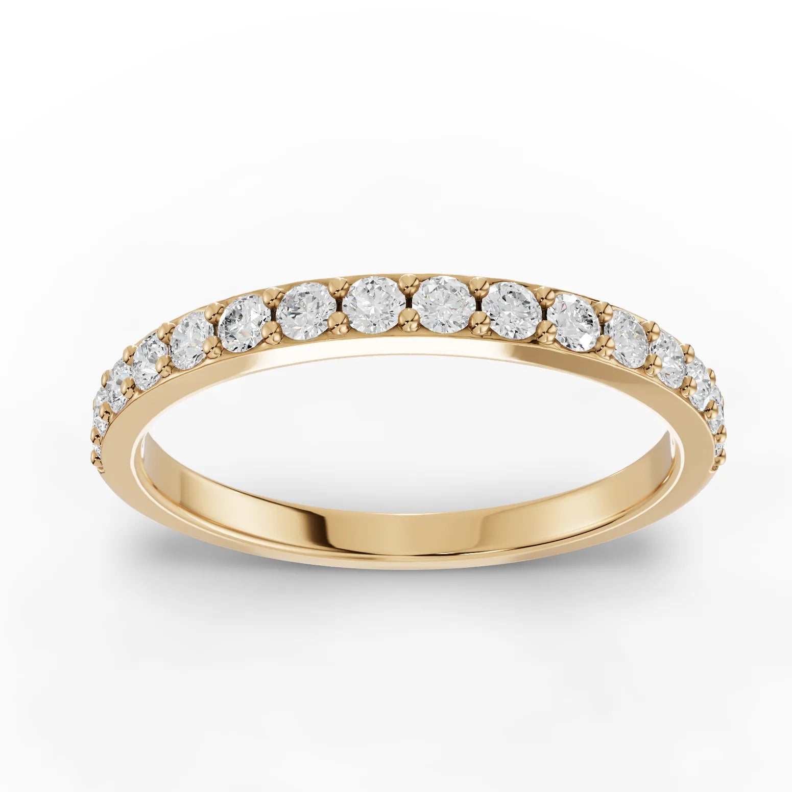 Celebrate timeless elegance with this classic half eternity band, expertly crafted in lustrous yellow gold. Featuring a continuous line of lab diamonds that gracefully wrap halfway around the band, this piece combines sophisticated design with ethical luxury. Lab diamonds offer exceptional brilliance and clarity while providing excellent value compared to mined alternatives. The polished yellow gold setting enhances the warm glow of each stone, making this ring an ideal choice for weddings, anniversaries, or as a meaningful standalone piece. Versatile enough to complement any engagement ring or worn independently, this half eternity band exemplifies refined craftsmanship and enduring style.