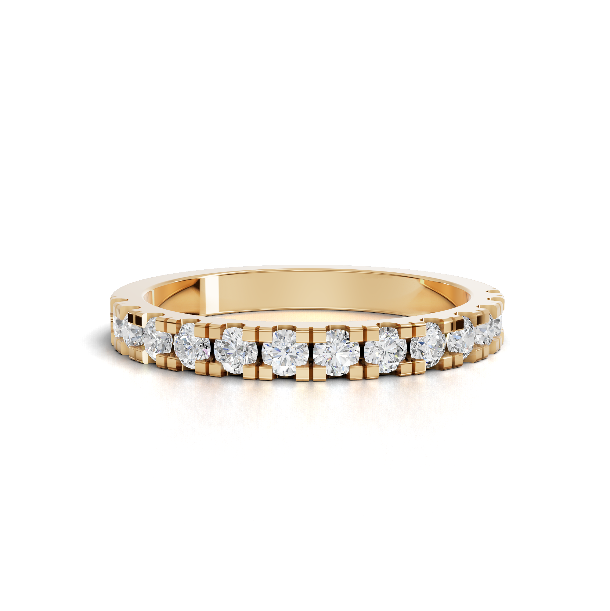Celebrate your love with this elegant half eternity wedding band, featuring lab-grown diamonds set in a timeless round design. Each stone is carefully selected for brilliance and clarity, offering the same optical properties as mined diamonds at a more accessible price point. The half eternity setting showcases diamonds along the front of the band, creating a sophisticated look that complements any engagement ring. Crafted with precision and attention to detail, this piece is perfect for marking life's most precious moments with enduring style and sparkle.