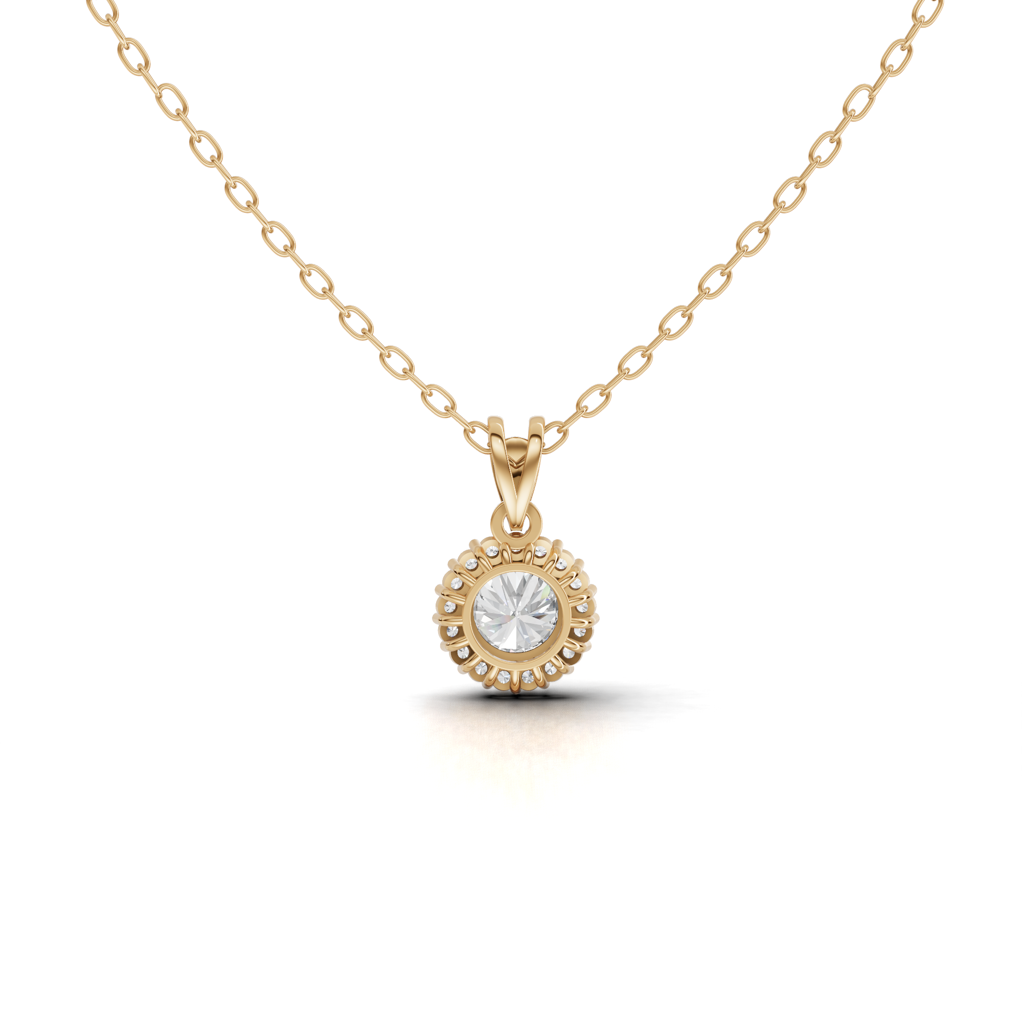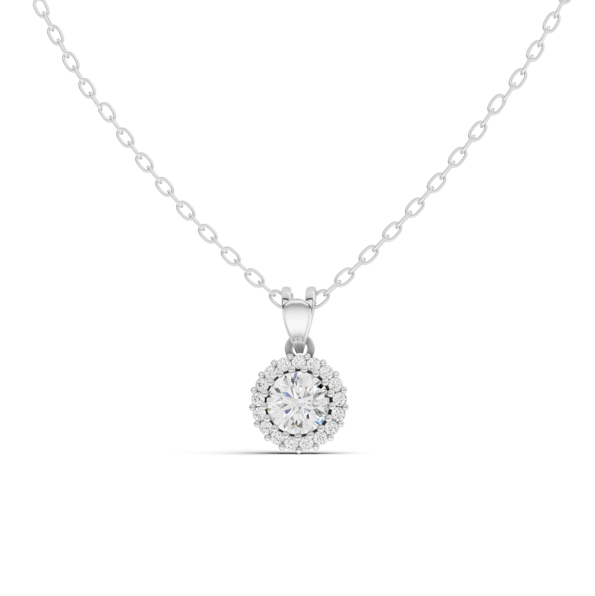 Elevate your elegance with this stunning Round Lab Grown Diamond Halo Pendant Necklace. Featuring a brilliant lab-grown diamond at its center, surrounded by a sparkling halo of complementary stones, this piece combines timeless sophistication with modern sustainability. The carefully crafted design ensures maximum brilliance and light reflection, making it perfect for both everyday wear and special occasions. Lab-grown diamonds offer the same quality and beauty as mined diamonds while being an eco-conscious choice. A versatile addition to any jewelry collection that radiates luxury and grace.