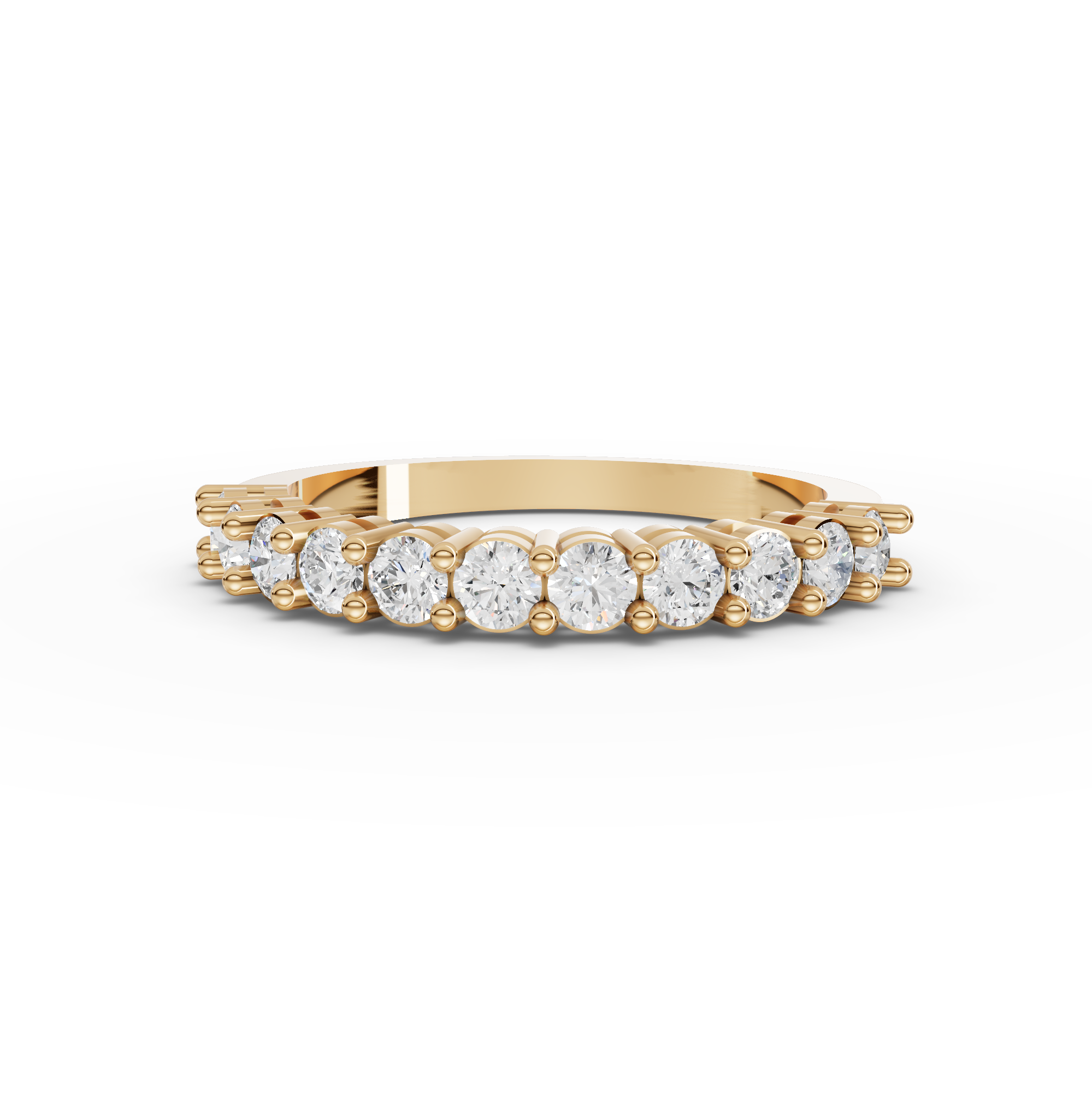 Celebrate your love with this stunning half eternity wedding band, featuring a brilliant 0.65 carat round lab diamond set in a classic prong setting. Crafted with precision and elegance, this piece combines timeless design with the sparkle and durability of lab-grown diamonds. Perfect as a standalone statement or paired with an engagement ring, it offers sophisticated style at an exceptional value. A meaningful choice for those seeking beauty, sustainability, and lasting brilliance.